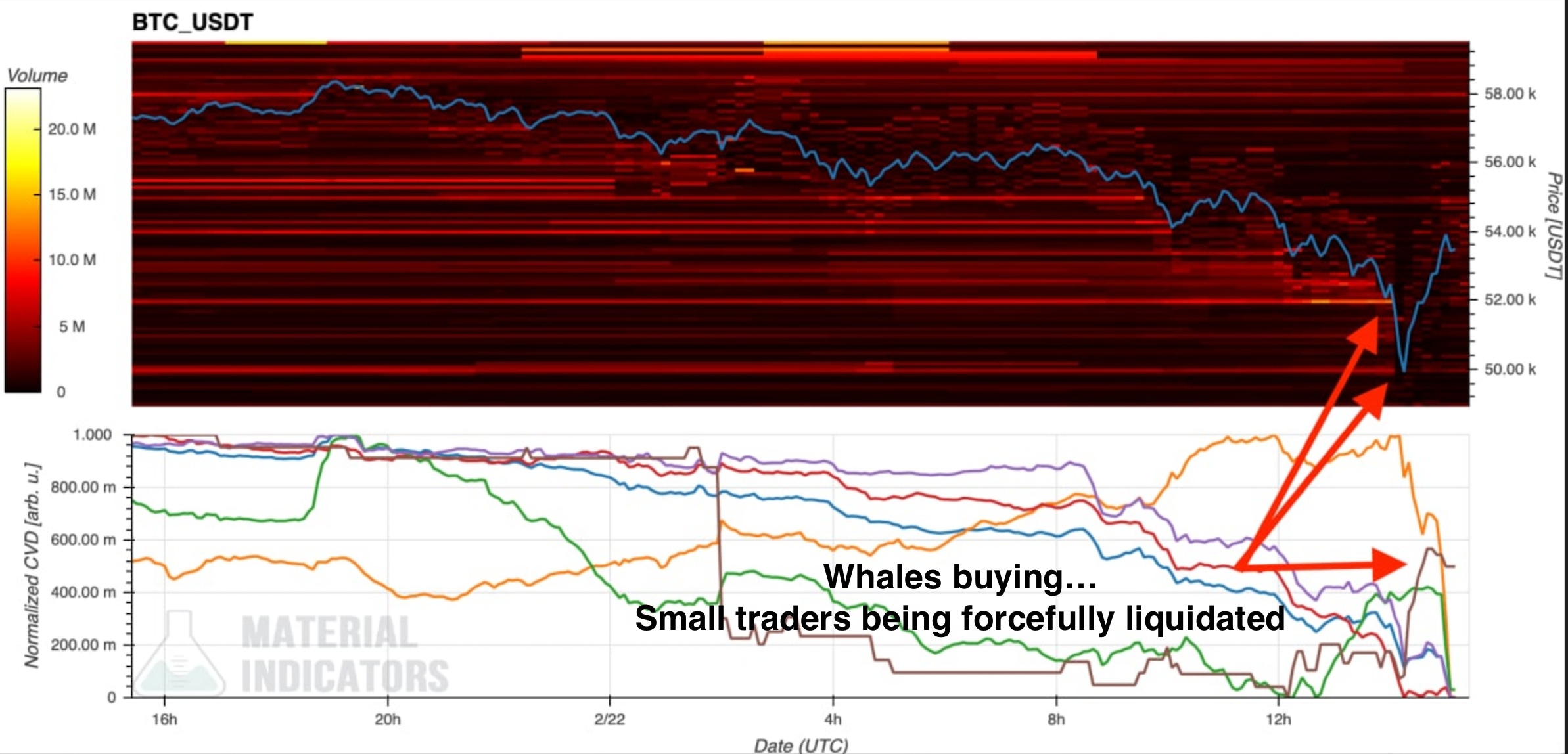 Yet, as we saw in the first chart, whales were the first ones to step up to buy on Binance… An exchange that saw their API and exchange become ineffective while this took place. Meaning it’s likely the trader purchasing bitcoin was able to bypass the technical issues and create enough buy support in the face of billions of dollars of liquidations to the point where Coinbase’s price, not Binance’s price, traded at a discount.