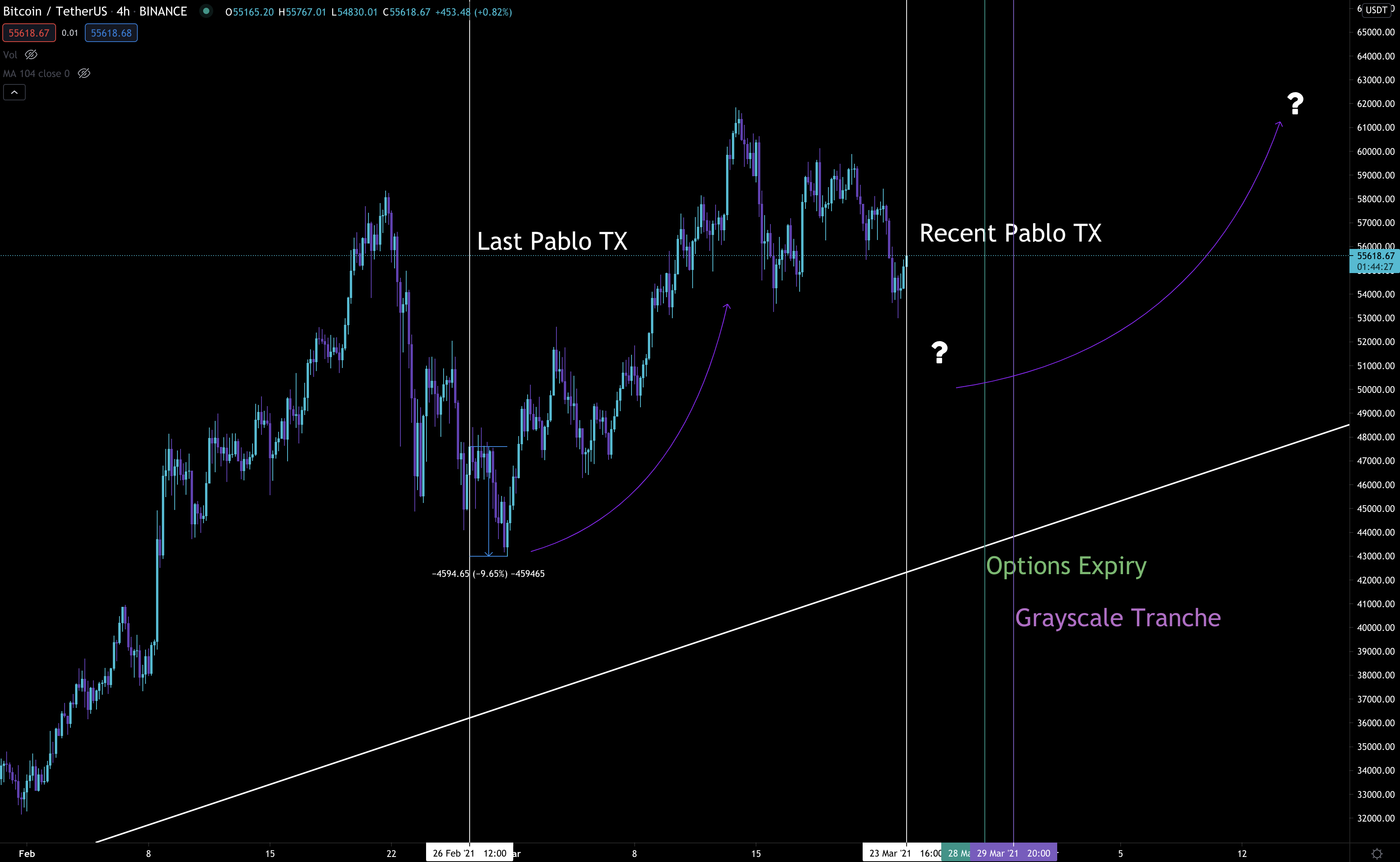 As you can see the last transaction was back on February 26th. The timing wasn’t Da Vinci like as we saw in March 2020. After price pushed up a bit we witnessed price make its final leg lower before bitcoin went on to notch a new all-time high.
