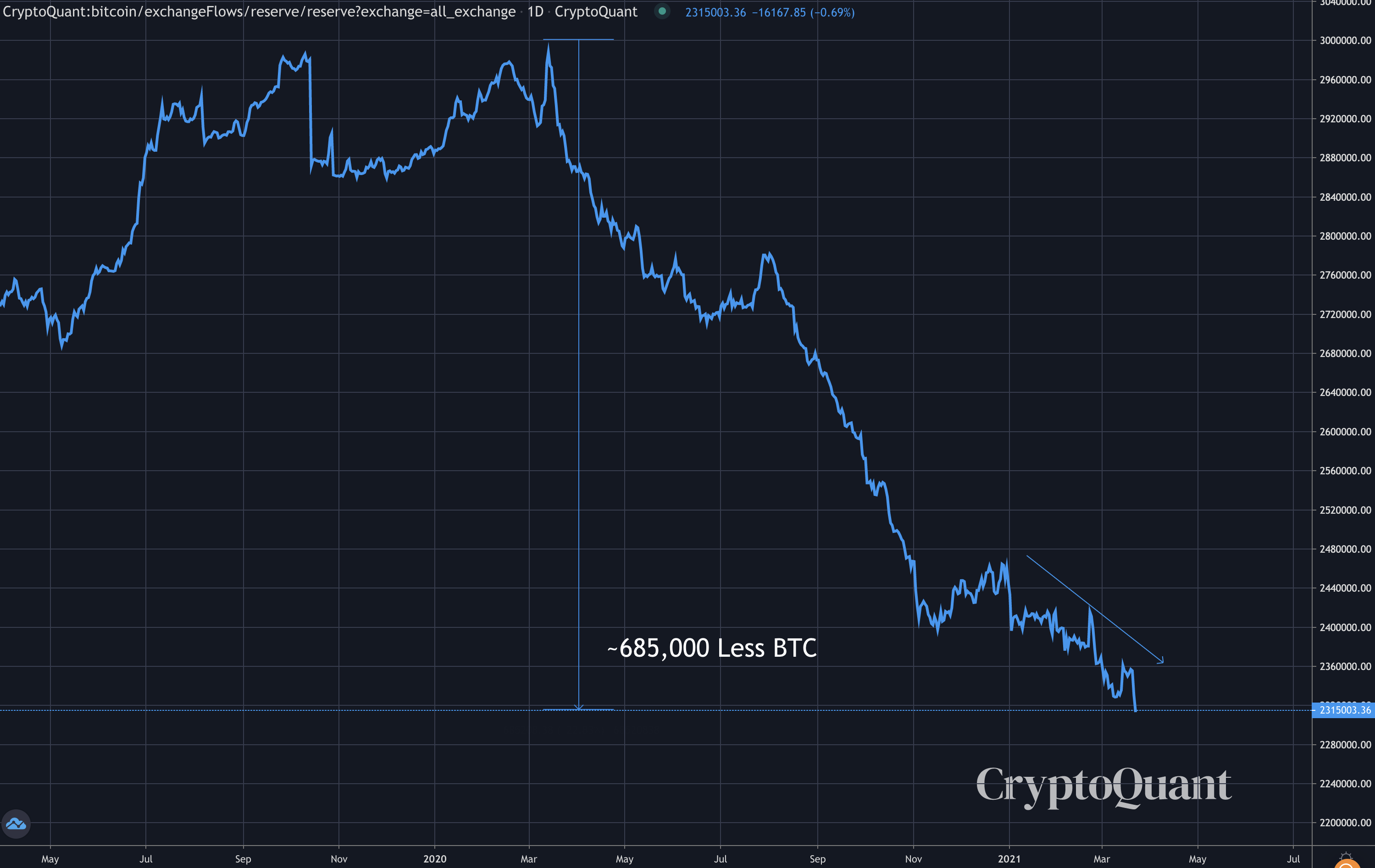 And bitcoin’s impending Liquidity Crisis as BTC are still exiting exchanges per the chart below.