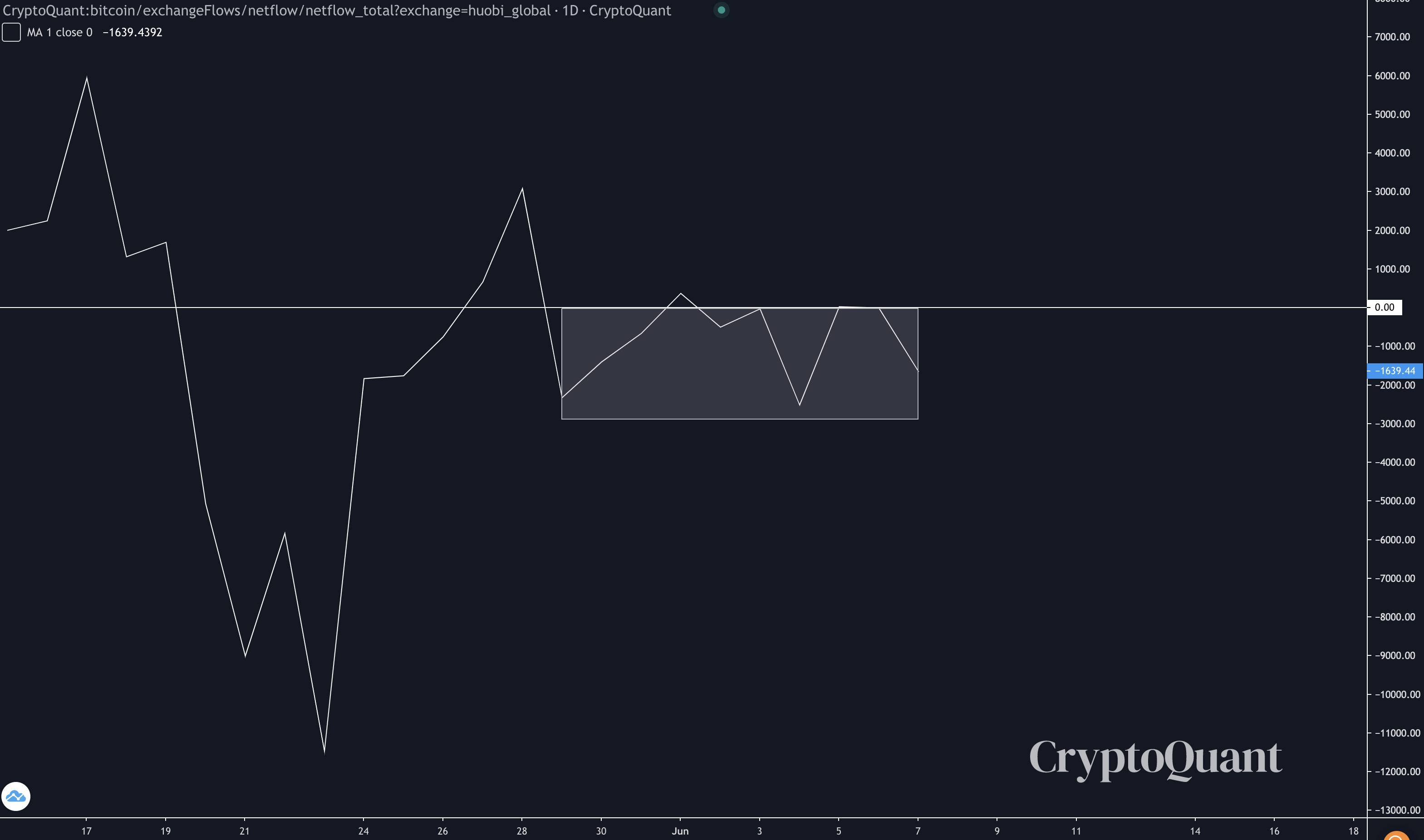 The second chart is Huobi’s netflows. This exchange saw a significant outflow after the China ban last month. The exodus is continuing, but a bit slower. It’s nothing to get too worried about as the average is floating around 1-2k per day, it’s simply something to make note and backs up what we see with Kraken.