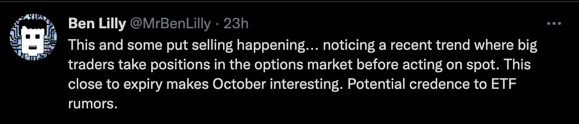 Thus, if there is any positive news that transpires, it can serve as jet fuel. And maybe, just maybe, this activity we see in the options market is hinting to us what might happen. If so, I would expect the onchain analysis we started off today’s issue discussing to reflect rising demand amidst rising prices as we move closer to the end of 2021.