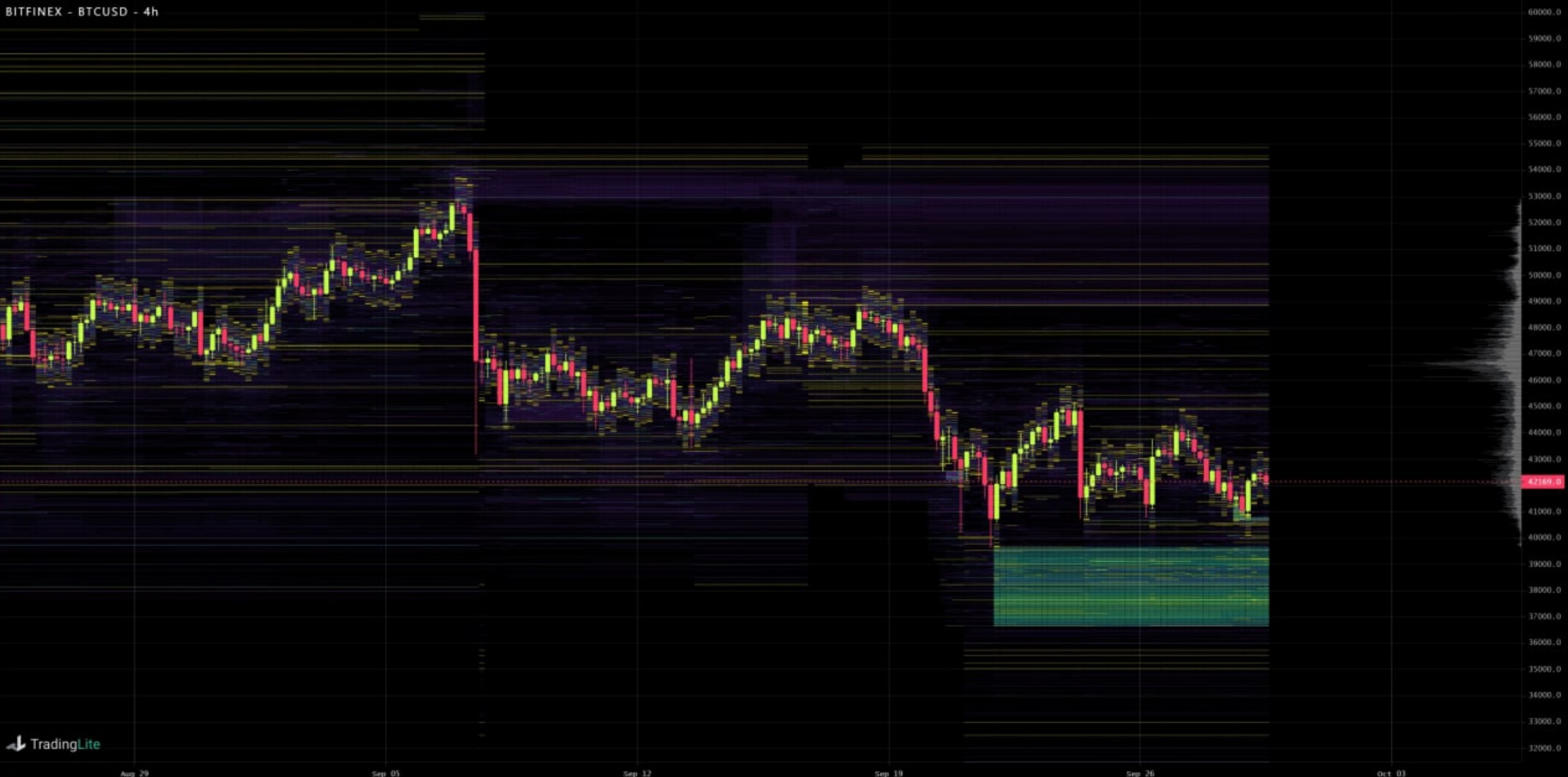 Here’s the order book at Bitfinex visualizing this same phenomenon using Tradinglite.