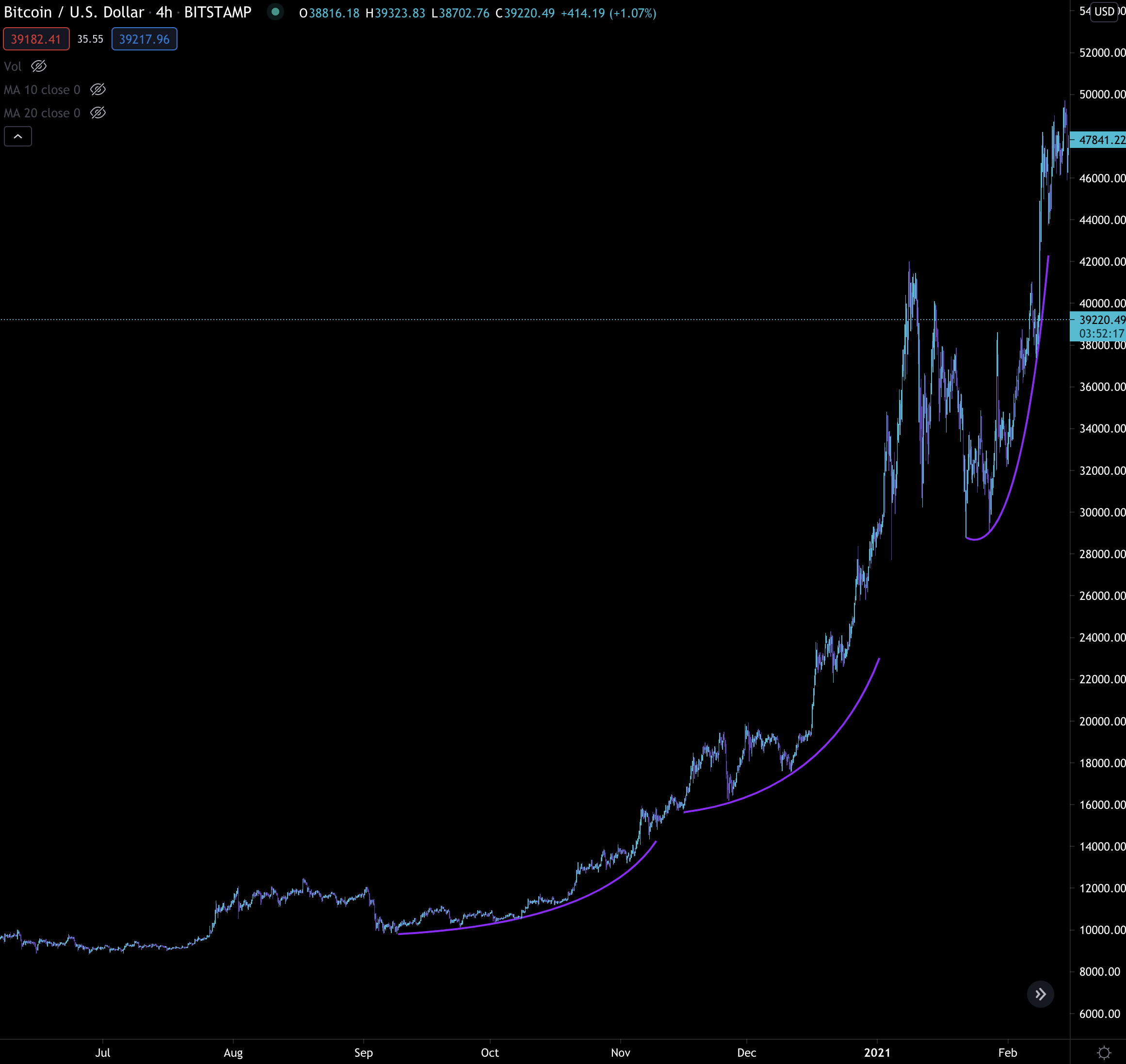 It’s a parabolic curve. Its when you know you’re at the end of this accumulation stretch and several players are fighting over one another to get on the order book to fill their orders before it runs.