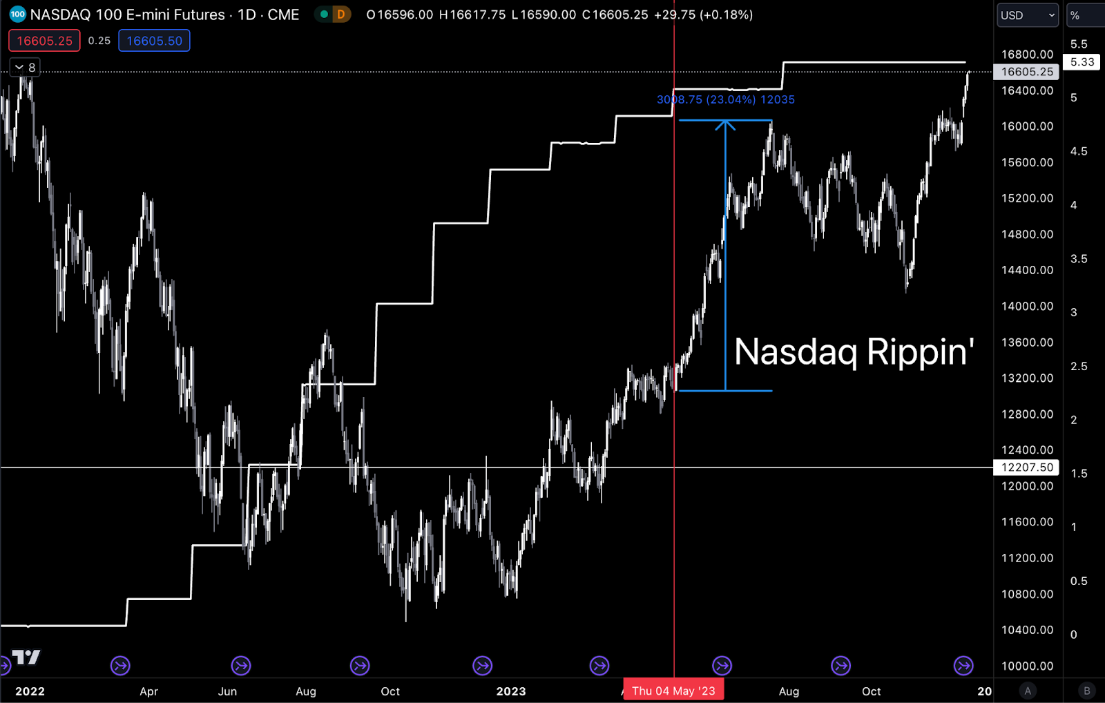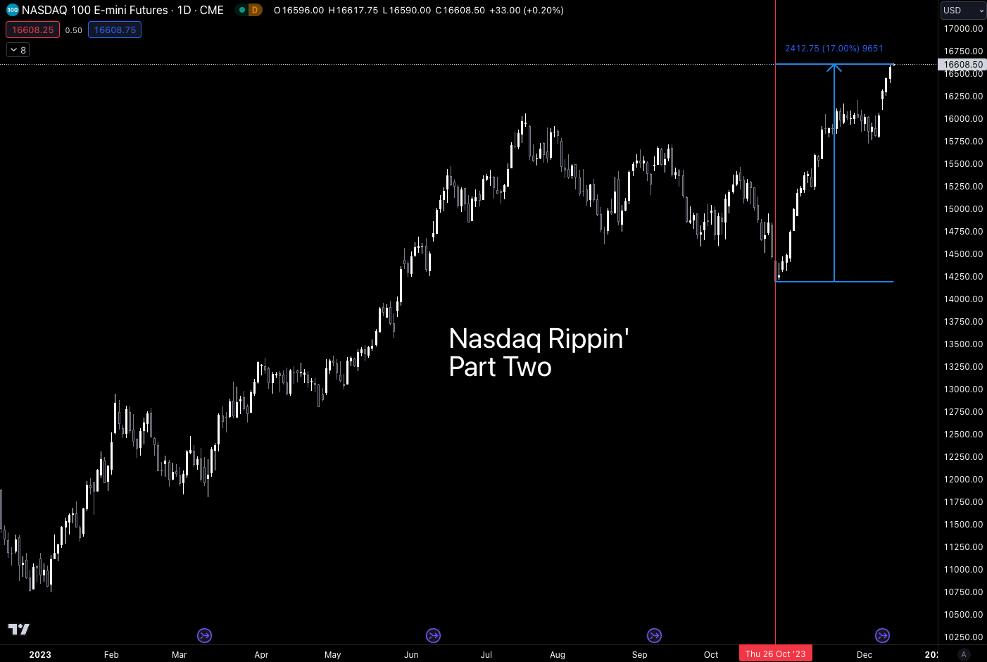 Below is the Nasdaq with the October 26 date as the red vertical line. The market has risen 17% since then.