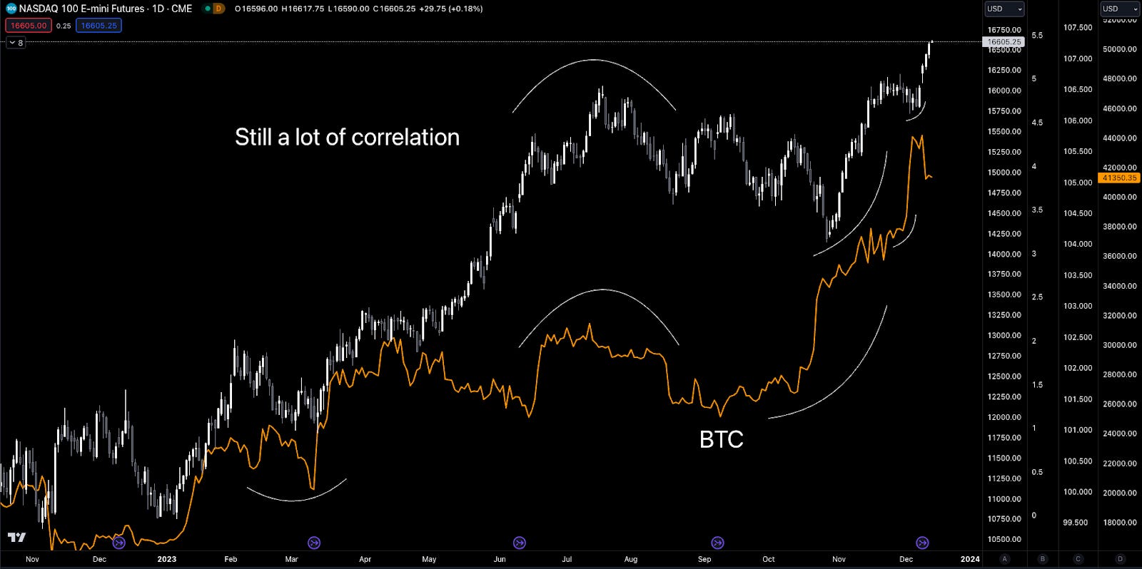 What’s interesting here is that Bitcoin is actually front-running some of TradFi’s moves for the most part.