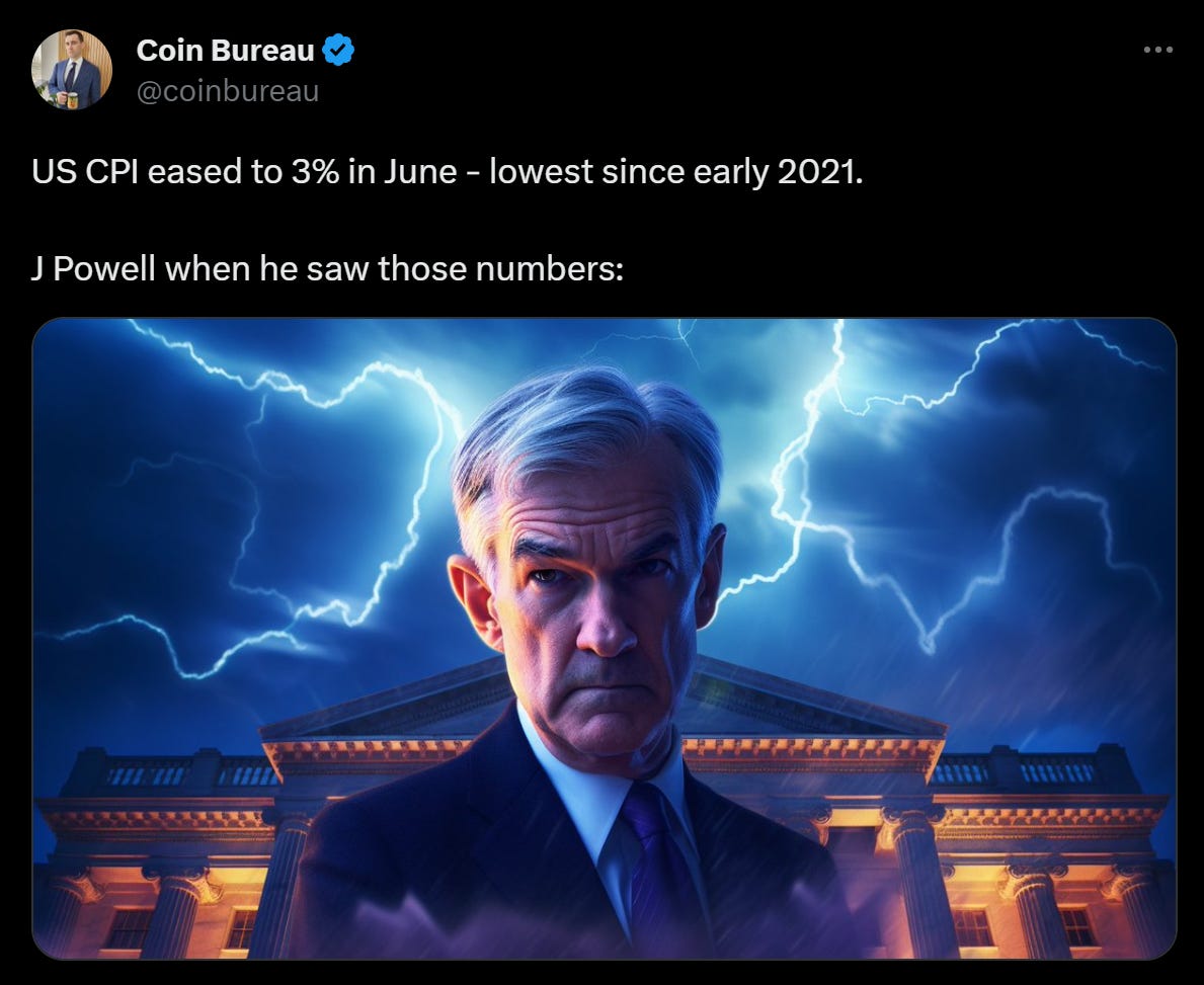 And so the headline news is gonna be like, wow, we've really combated inflation, things have looked good...So, how is [Powell] going to go ahead and navigate the next few weeks when he wants to go ahead possibly and raise rates to combat inflation? He's going to have to find a new narrative. And so...it feels like he's going to start to set the tone of something. Specifically what that is, I'm not sure, but it's something to take note of in the weeks to come.