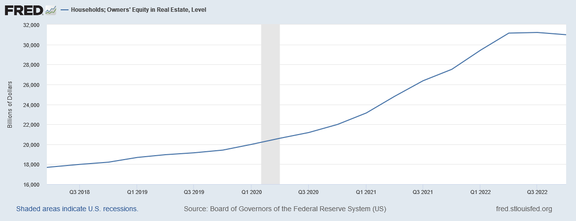 In defiance of all the headlines of real estate market downturns, owners’ equity in real estate is actually plateauing as of the end of 2022.