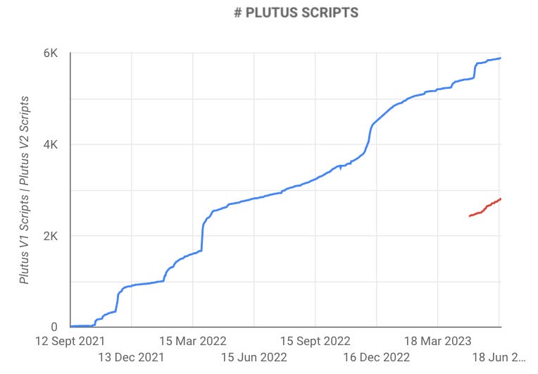 One data point that speaks to the resilience and tenacity of the people working on Cardano is the number of smart contracts (known as Plutus scripts in Cardano) deployed through time.