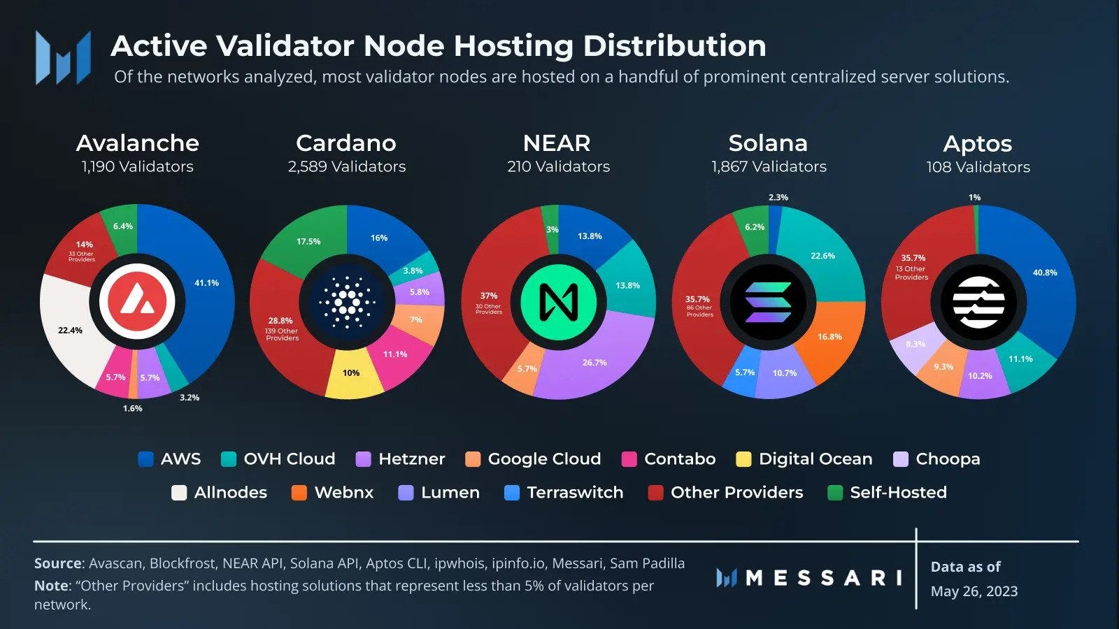 Running validators on hosted servers and relying on a few providers can be convenient, but it’s not smart. The blockchain becomes dependent on the whims of a few corporations and governments, who could ban them.