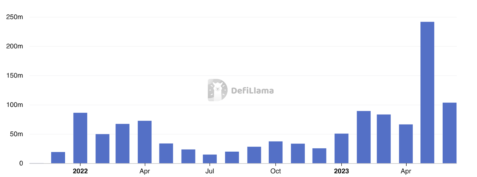 Decentralized exchange (DEX) volumes for Cardano increased from around $60-$90 million in the months prior to almost $250 million in May. According to DefiLlama, the May weekly volumes of its leading DEX, Minswap, were 5-10 times those of prior weeks. Heck, Cardano even had its own memecoin season.