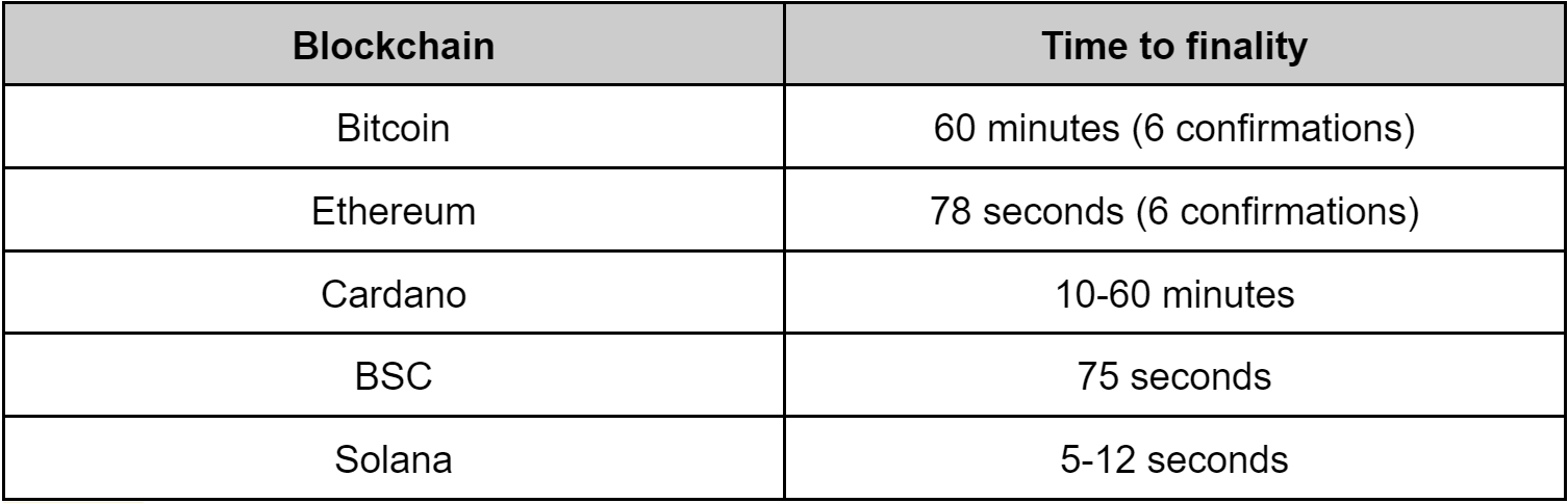 Sources: https://twitter.com/CryptoSeq/status/1433420657291763714, https://cexplorer.io/article/finality-of-cardano-transactions, https://pontem.medium.com/a-detailed-guide-to-blockchain-speed-tps-vs-80c1d52402d0 ↩