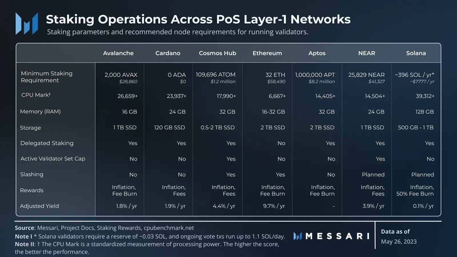 That’s in part due to the fact that there’s no minimum number of tokens you need to stake. In Ethereum, validators (the nodes that participate in consensus on a chain and validate transactions) need to stake at least 32 ETH. At current prices, that’s around $50,000.