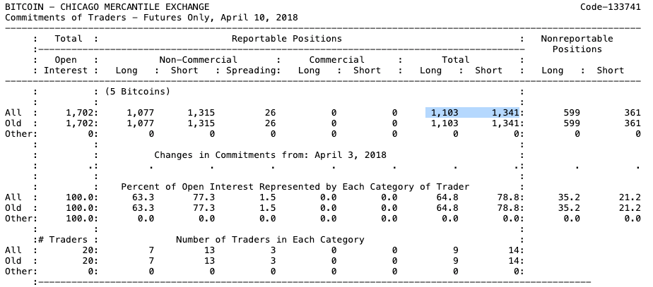 On April 10, 2018 Bitcoin was trading at $6,830. At the time 58% of open positions were short.