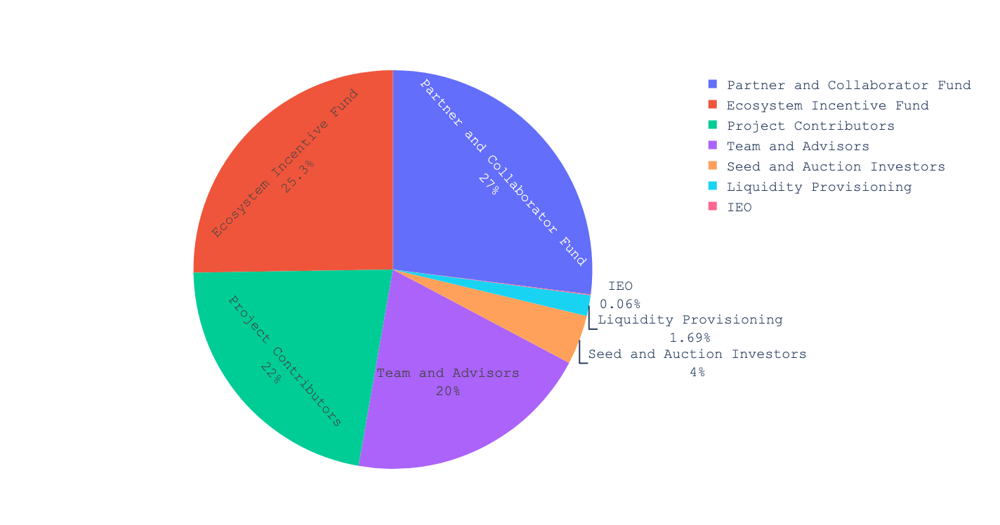 An example of this is the project we mentioned above, Serum. It’s a decentralized exchange (DEX) on Solana that focuses on derivatives. Its governance token, SRM, had the following allocation: