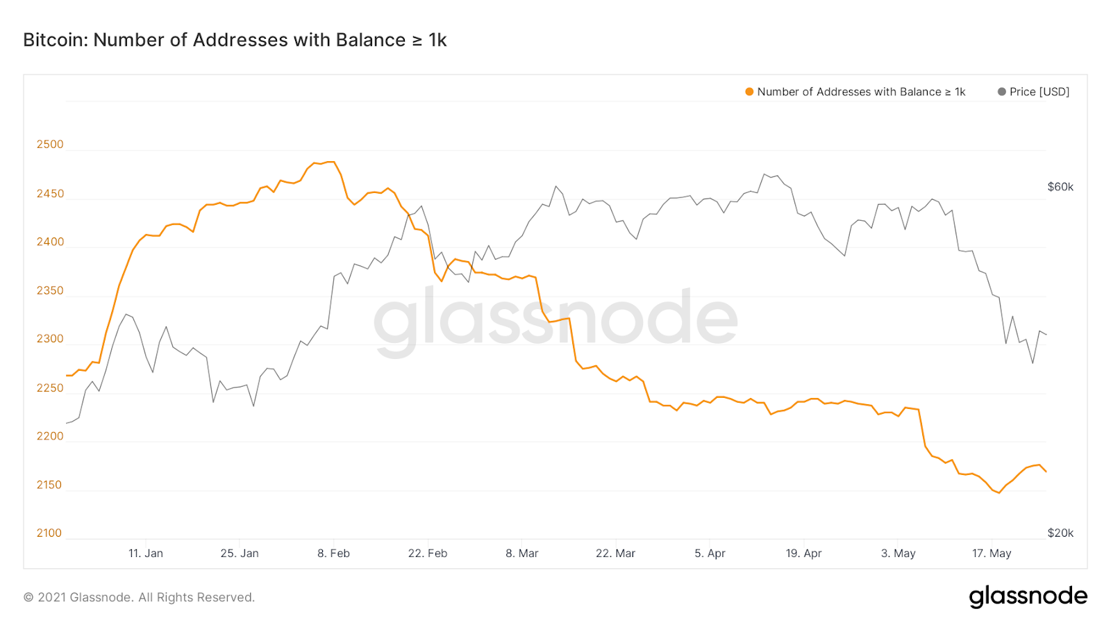 Furthermore, when we track the number of addresses with Balance > 1k, we see a limited increase in whale accumulation wallets.