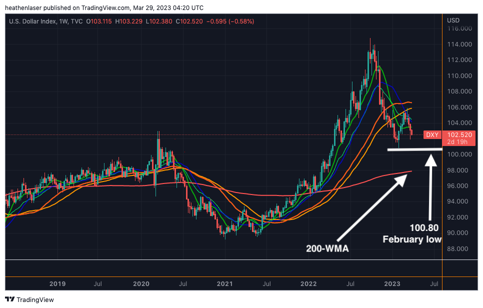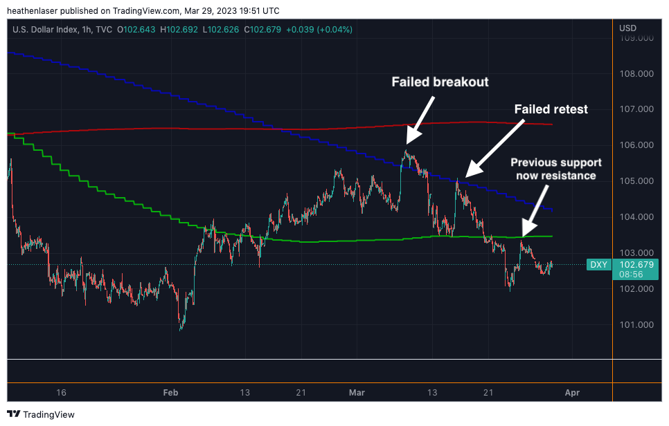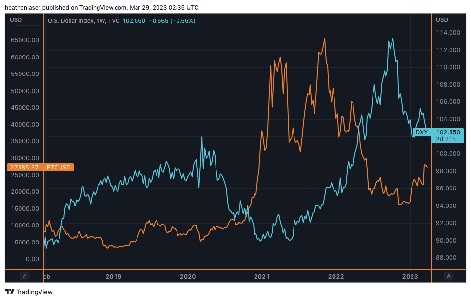 With this reverence of market wisdom in mind, today let’s once again analyze the technical data of DXY and BTC into the end of Q1 2023, as we seek to determine which of these will hold the upper hand in Q2 and possibly beyond.