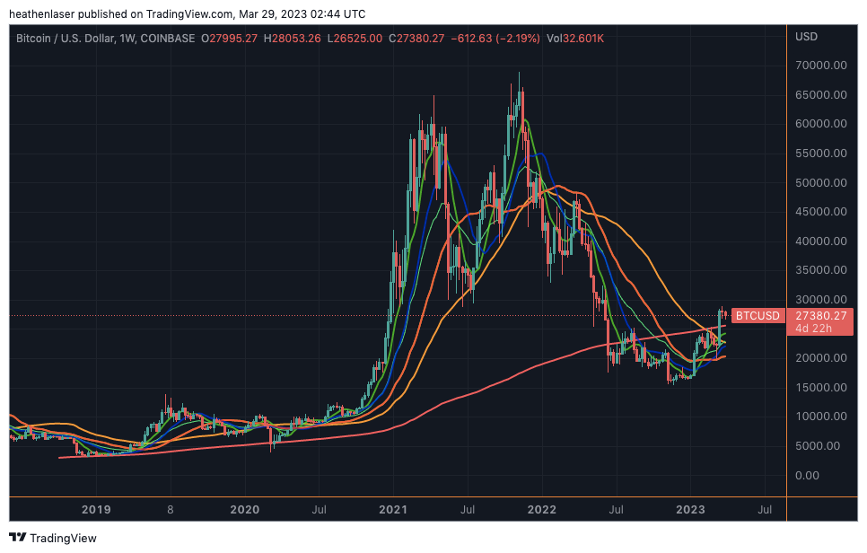 Now when we zoom out, we see BTC is above all of its key MAs on both the weekly and monthly charts for the first time since November 2021, when it was trading above $60,000.