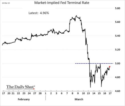 The chart below shows how after DXY broke the banks, rate markets broke DXY, as the implied terminal rate plummeted nearly 20% from a high of 5.7% to lows near 4.7%.
