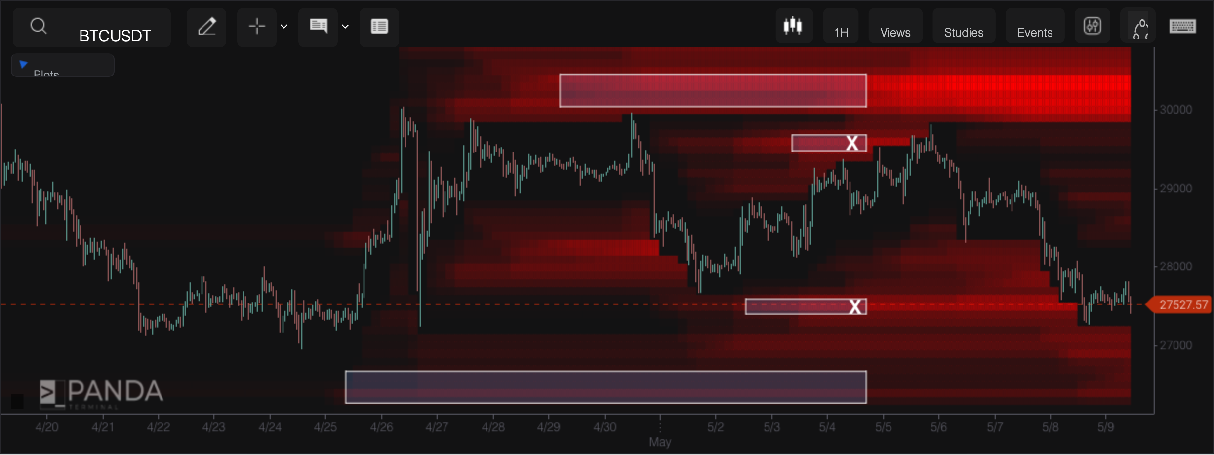 In our chart from last week that showcased liquidity pools, you can see price went ahead and took out the pool at $29,500 before pivoting to the price at the downside. It then swept liquidity at the $27,500 level as we predicted in our last update.