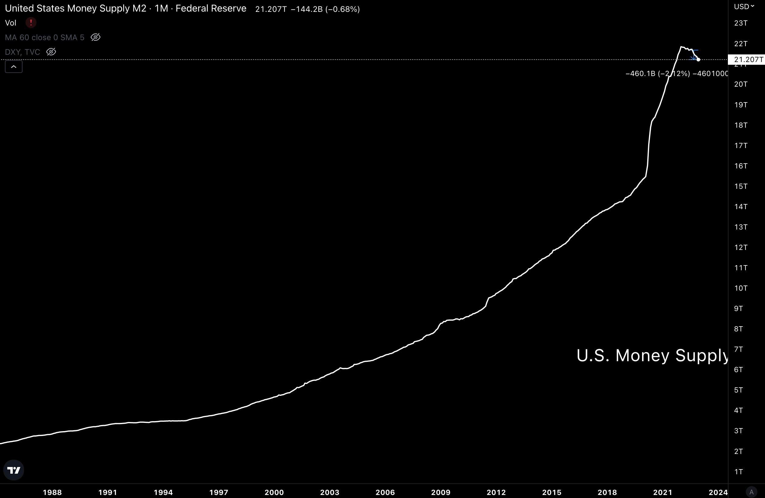 Here is the United States and its money supply as measured by M2. As you can see, it is down about $270 billion over the last six months. OK, no need to dwell on this as we have a lot to cover…