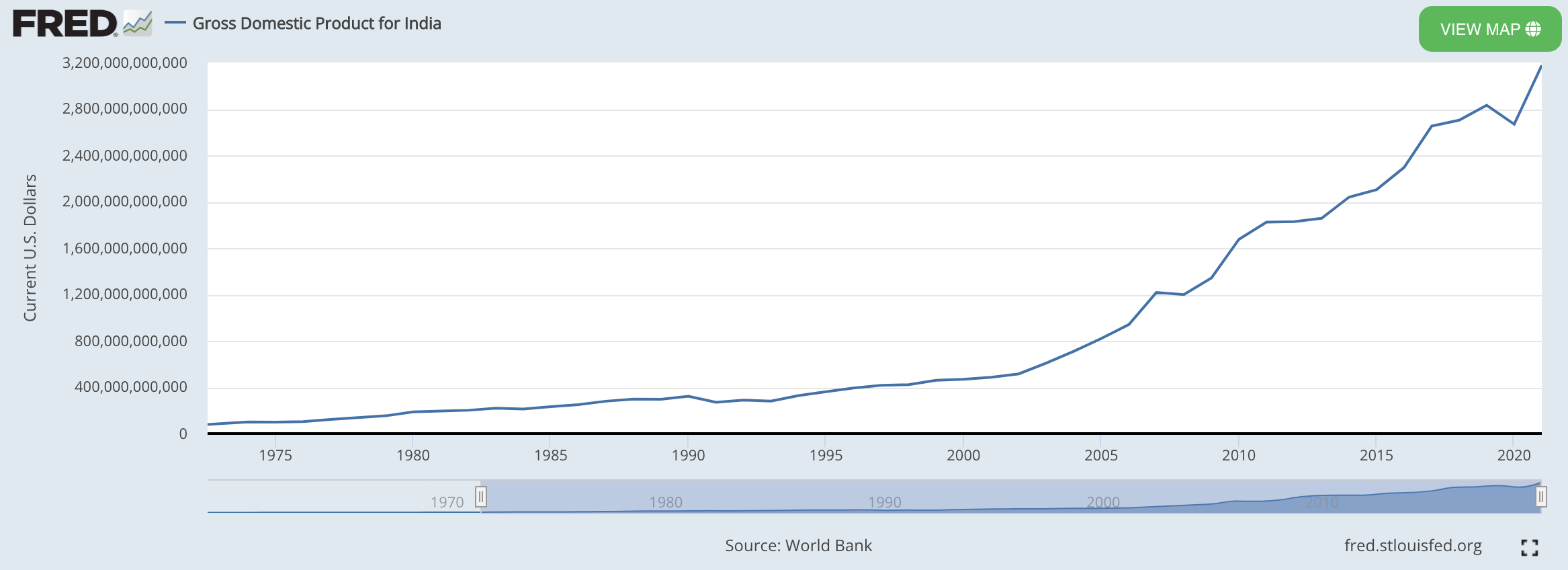 Then we can combine BRIC countries into another if we take out China from that basket. Let’s call this BRI-C. This bucket gives us Brazil, Russia, and India who account for just over $8 trillion of GDP.