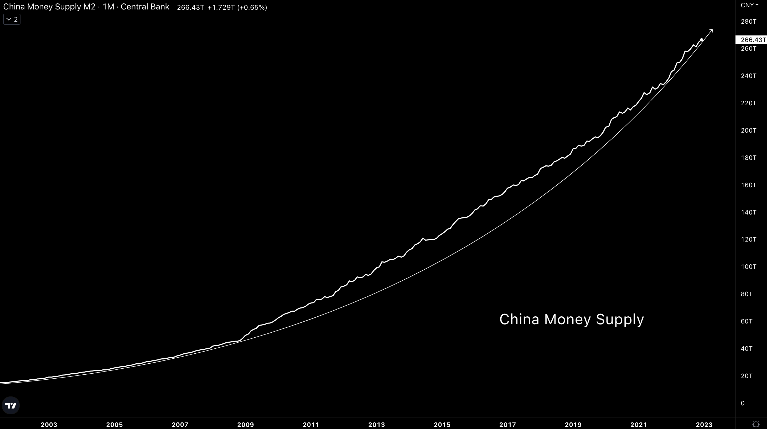 If the Chinese were taking their currency and exchanging it immediately for U.S. dollars, this denomination in U.S. dollars would be important. But my impression is that yield farming is not a common practice in China. Meaning more money supply in Chinese Yuan terms = more supply in general. And if anything, the impact of those added Yuan grow if the dollar weakens.