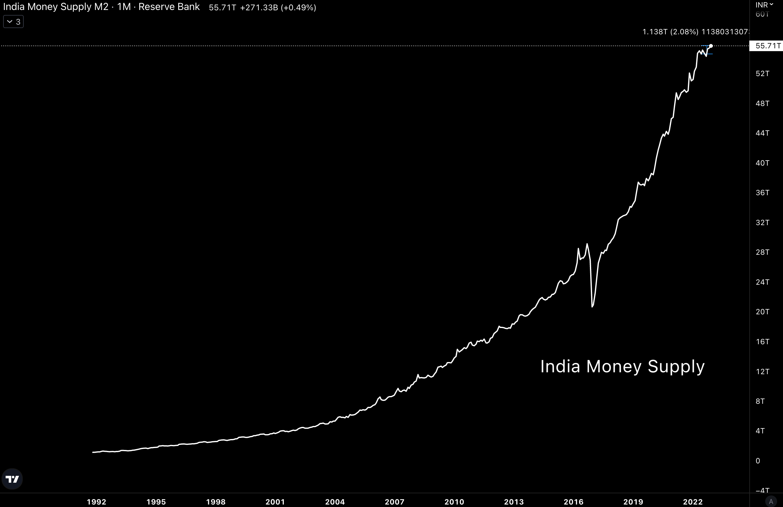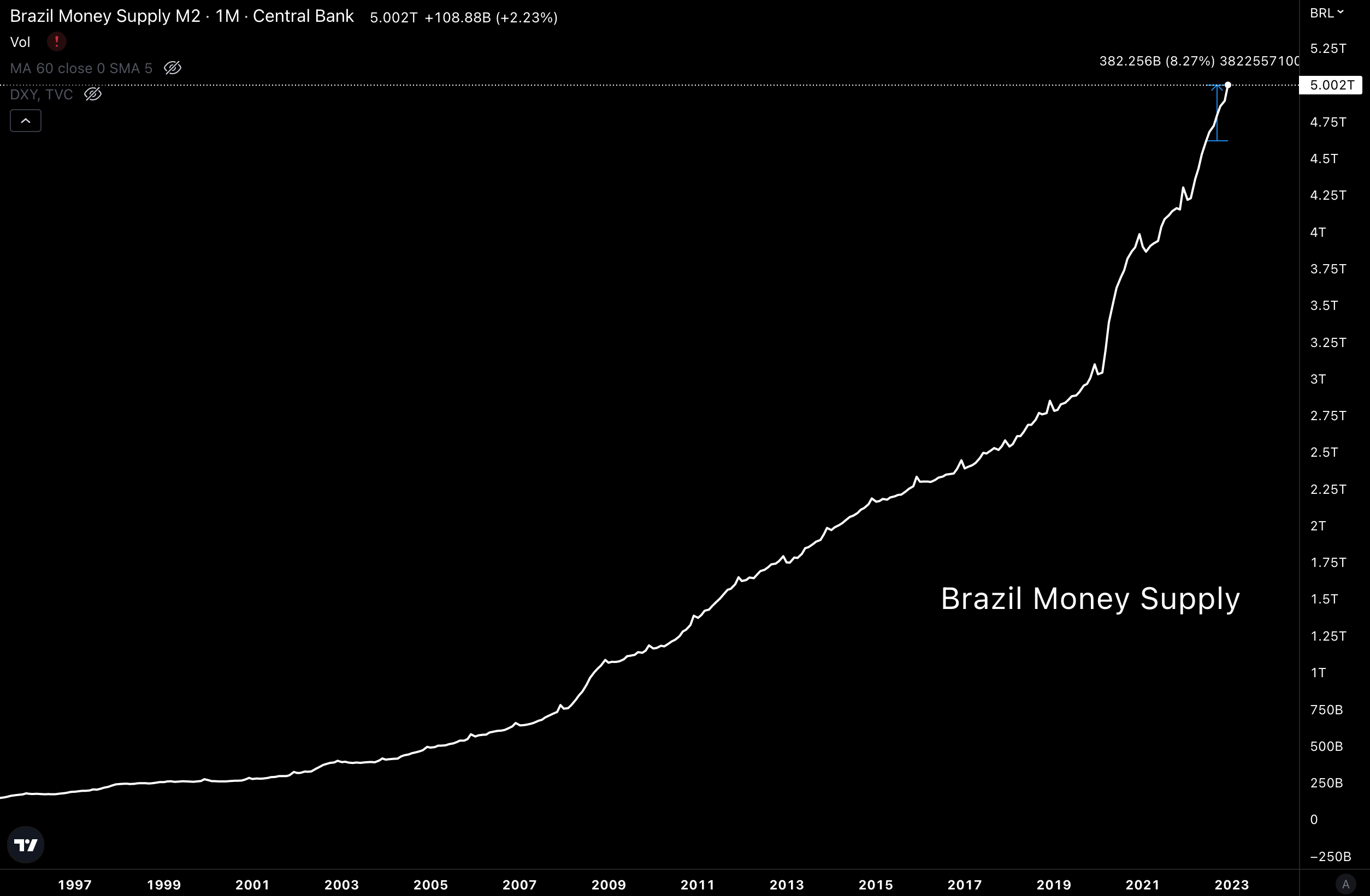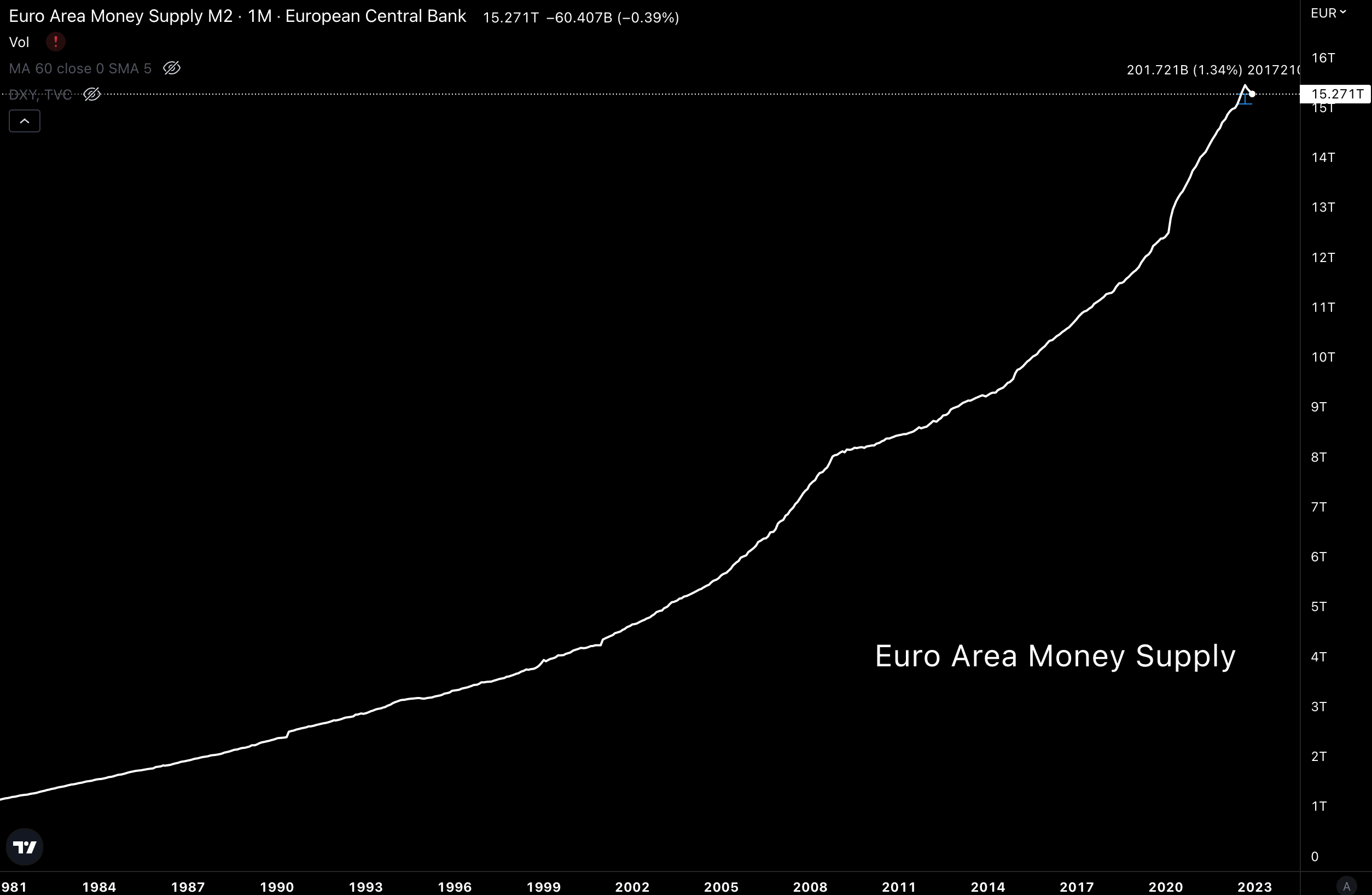 This amount of money supply represents $16.4 trillion in USD. We want to keep an eye on this bucket, especially if the supply in native currency terms begins to rise again.