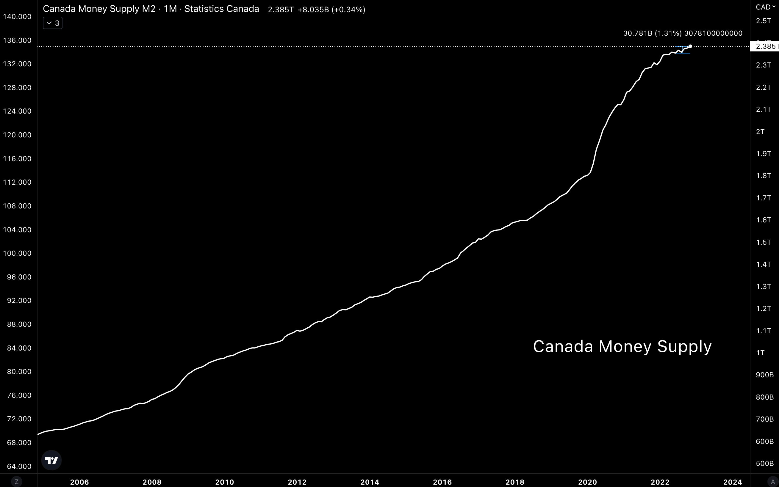 Overall, this bucket is showing that overall trends are up. But we have small subtle dips in money supply growth. When these supplies resume their normal trajectory, we will get outsized movements in the supply as measured by USD if the U.S. dollar continues to lose strength.