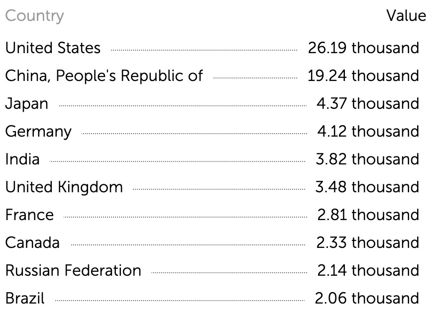 Here are the top 10 countries in terms of expected GDP for 2023 by the International Monetary Fund. Figures are in billions, so 26.19 thousand is $26.19 trillion. I know, weird, but it actually makes sense once you get into the sub-trillion dollar economies.