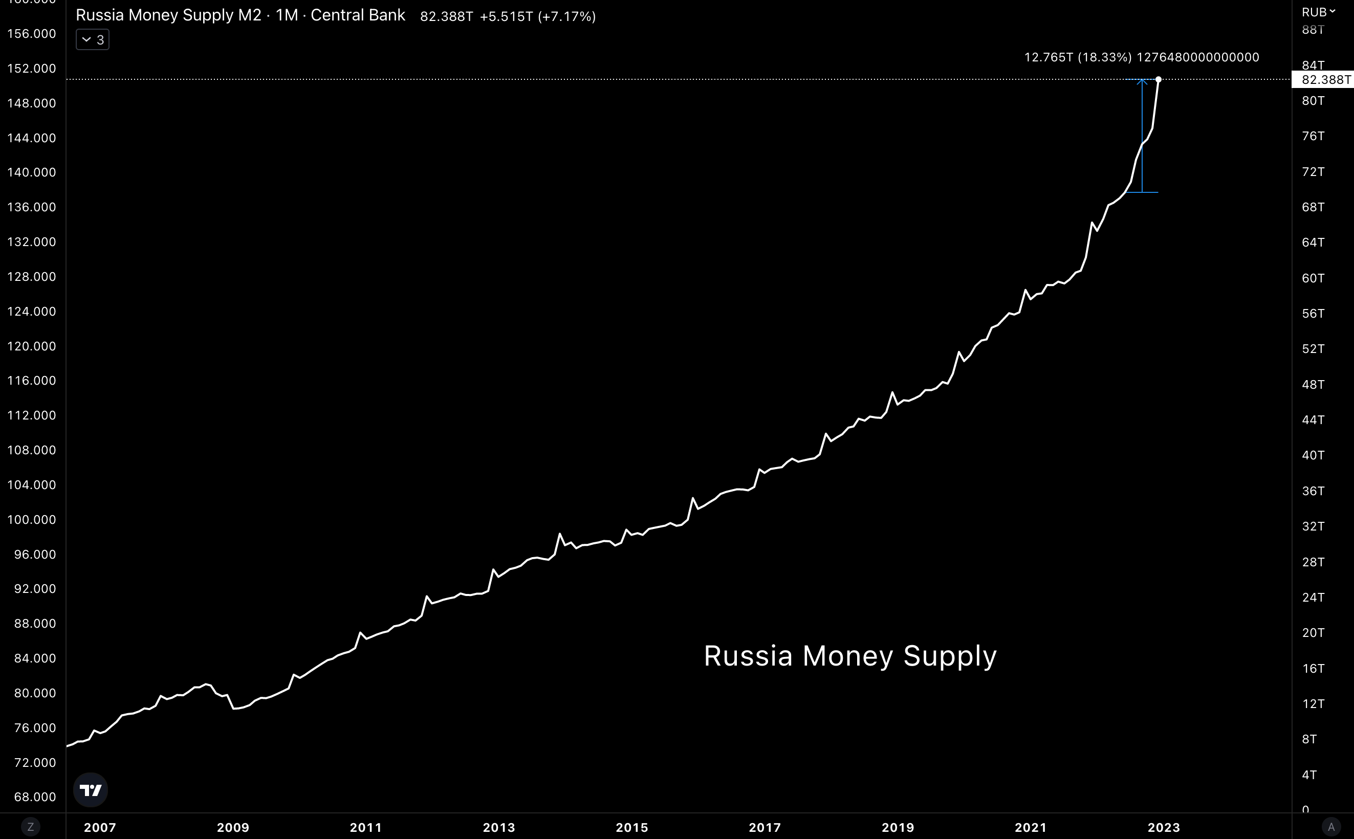 Looking at Japan first, we see the familiar up-and-to-the-right parabola forming. Only difference here is Japan slowed its money printing in Q4 2022. And similar to China, if the parabola holds true, the printing press will turn back on in Q2 of 2023.