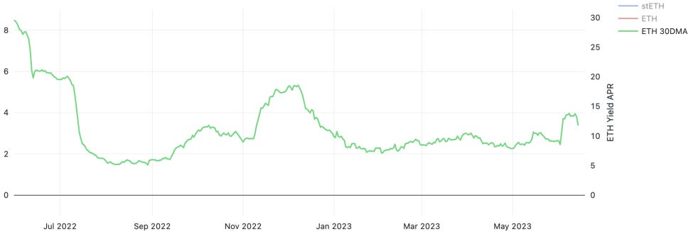 To better answer this question, we need to look at other forms of yield for ETH. One of the simpler ways to look at this is becoming an LPfor the Uniswap v2 stETH/ETH pool.