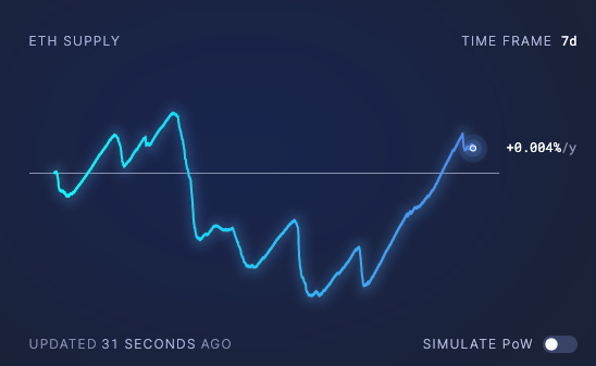 This is due in part to the low amount of activity taking place on the Ethereum network. It’s also why inflation has started to creep into the monetary realities of the system, as seen below on a 7-day view.