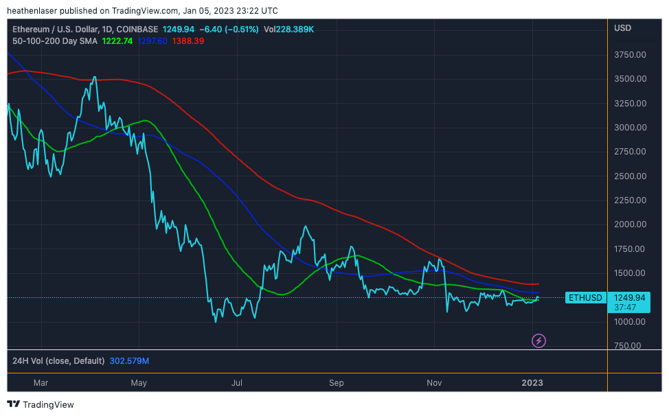 From October through December, its parabolic trend of 2022 collapsed, ending with it closing the year below all major MAs.