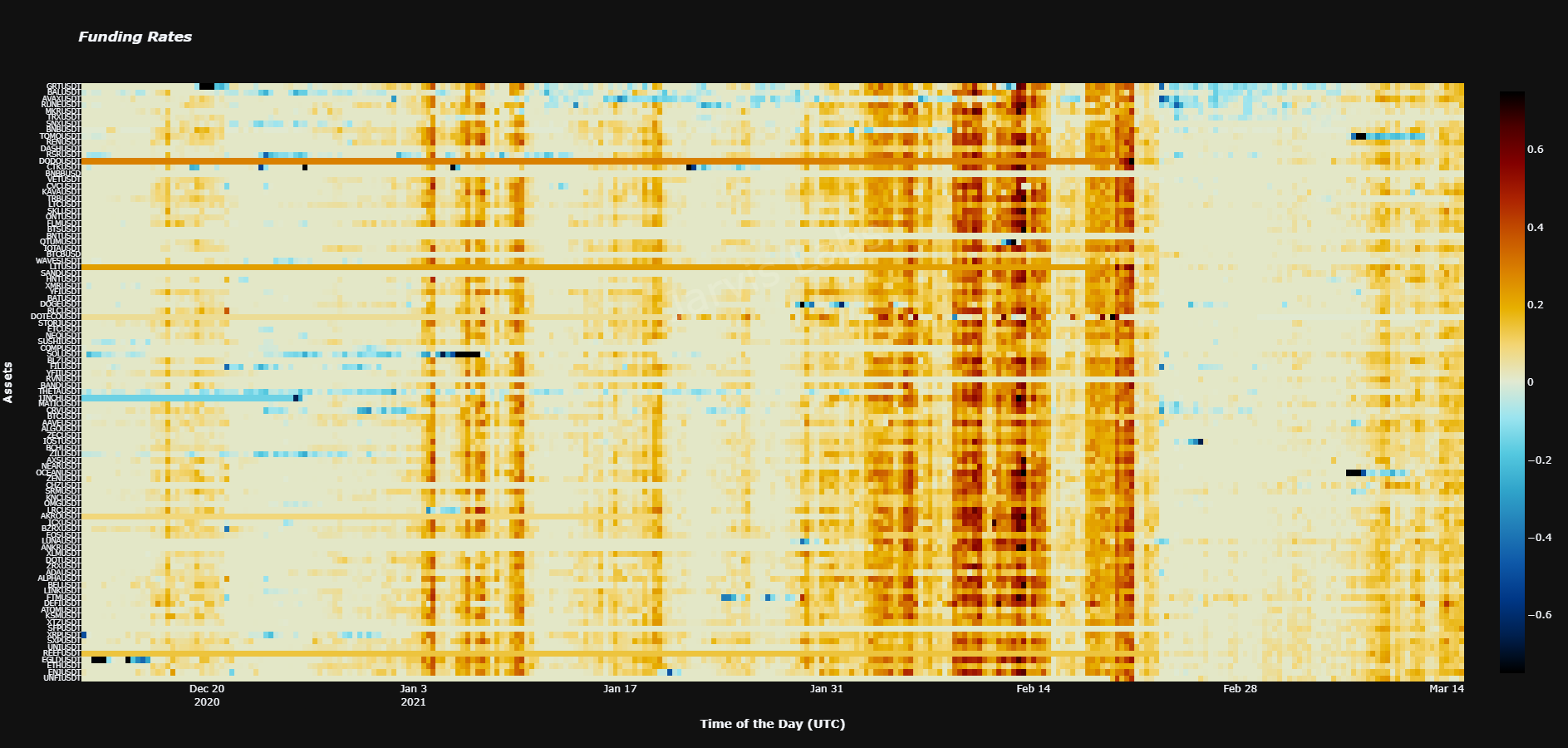 Funding rates are slightly elevated to high positive values now, especially alts. You can see our ChainPulse Heatmap below. Red means there’s excessive FOMO and irrational traders opening up very costly leveraged positions. Blue means there’s excessive fear. White is what we like… A mini dip to cool off could come early in the week before a price hike across the board.