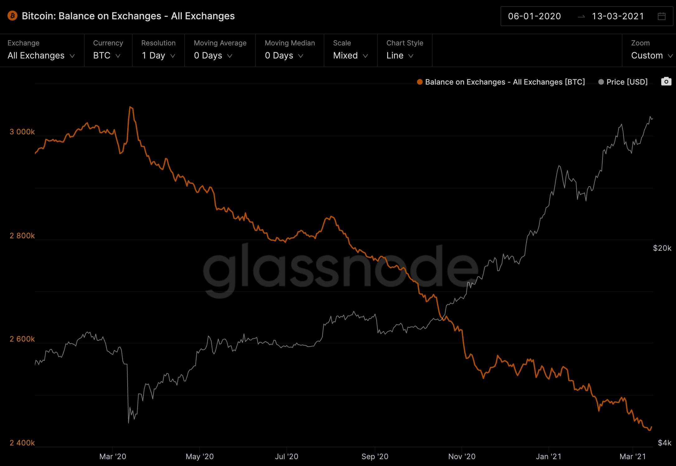 Bitcoin are moving off exchanges as seen in the chart below. This trend shows no signs of slowing down yet.