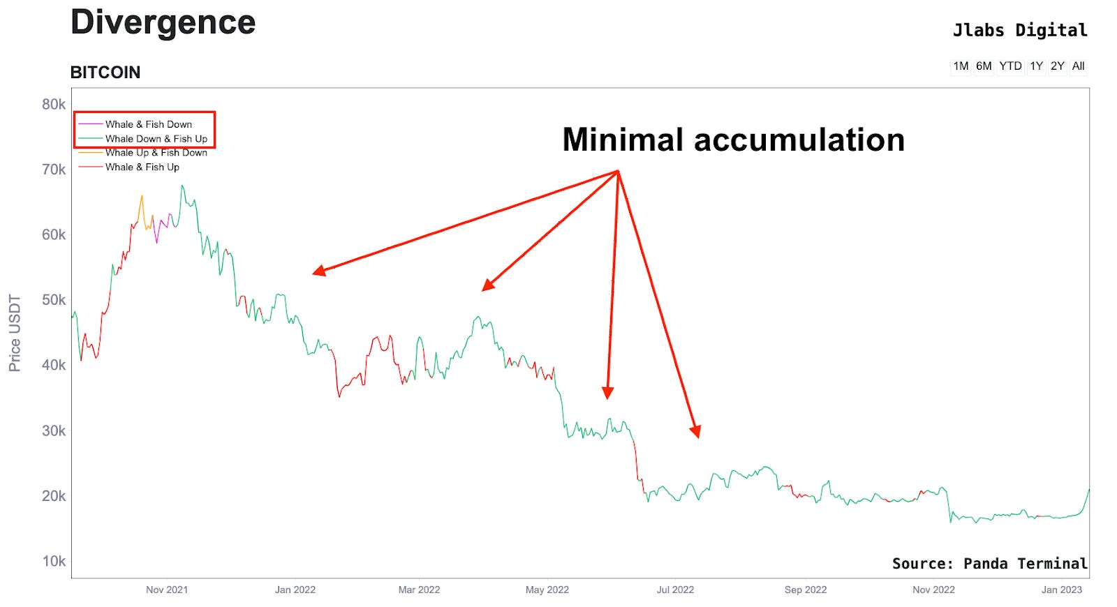 And in case you might think this chart is cherry picked, here is what it looked like last year. Hardly any red, but heavy green, the color that tells us larger wallets are not accumulating, but selling.