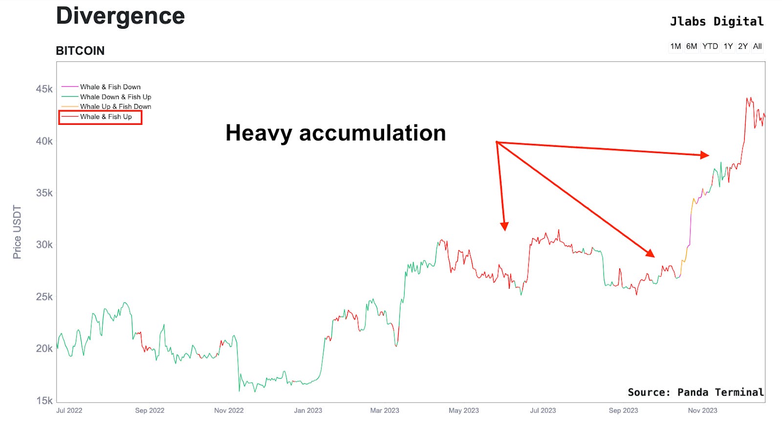 In fact, that first red arrow in the chart above is when BlackRock filed for a spot Bitcoin ETF. Ever since, accumulation has been very strong.