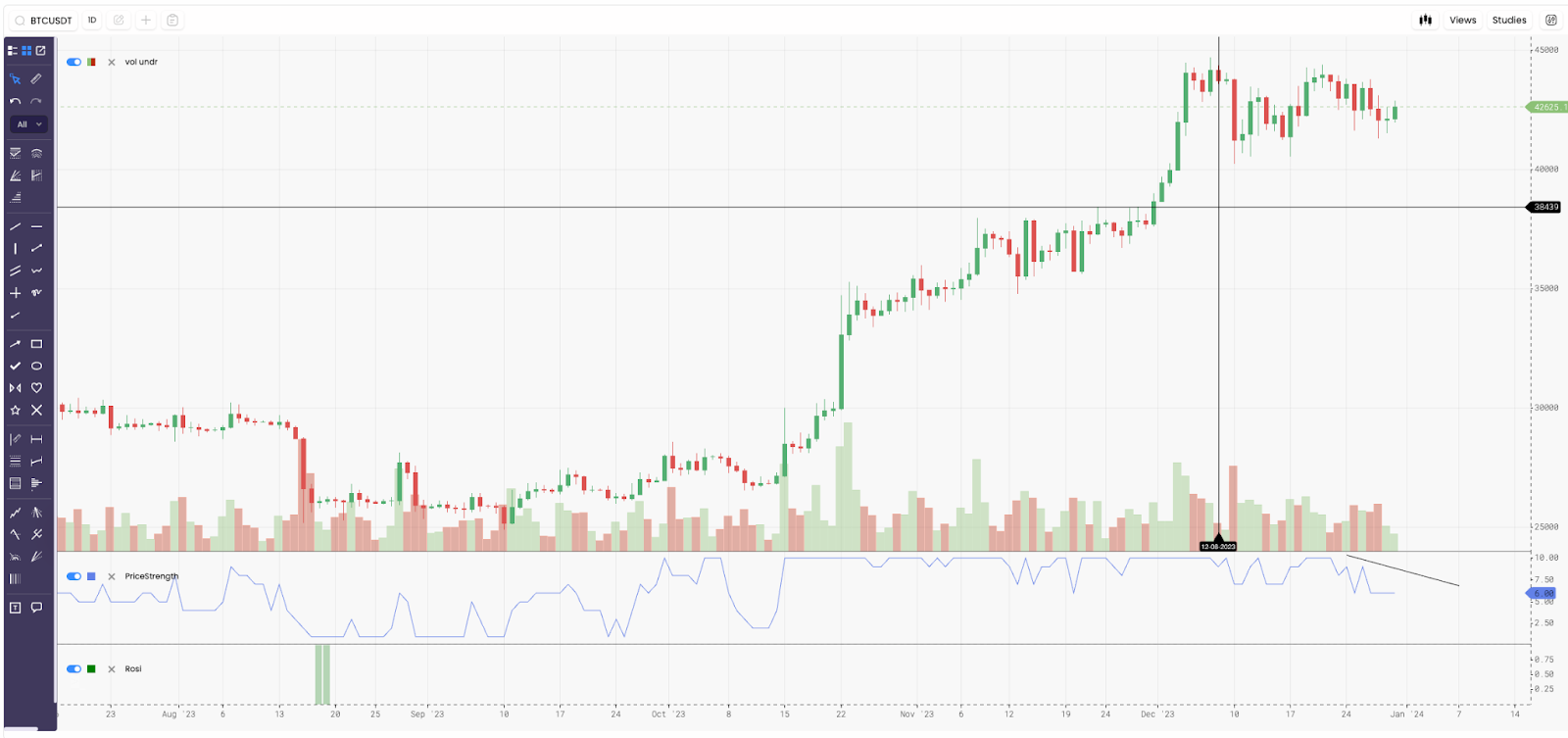 Price carved out its new range. It didn’t go back to its previous trading range, meaning it didn’t lose its bullish structure. So this loss of momentum isn’t me saying to watch out sub-$38k levels.