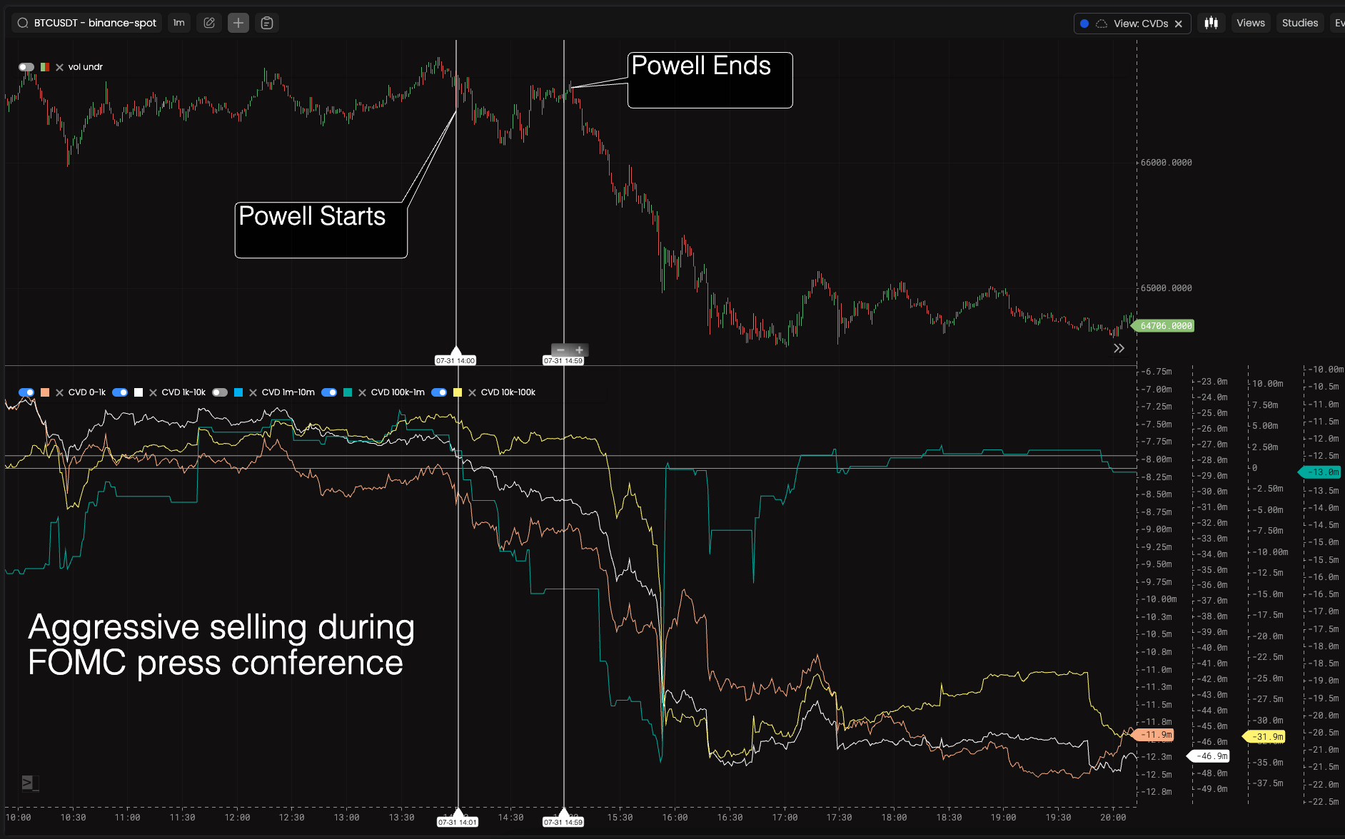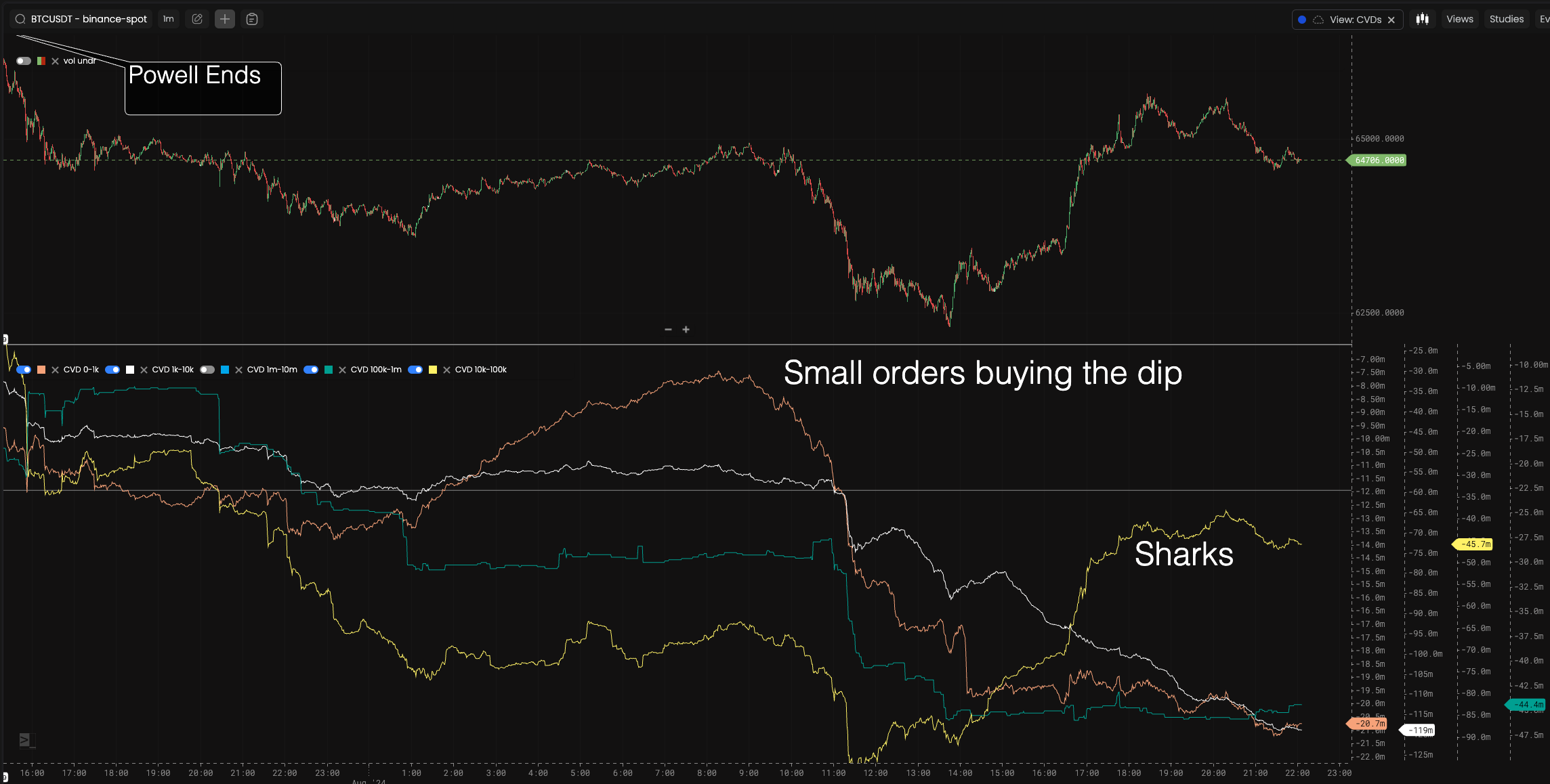 When we break down the trade flow during the speech, and see it like we do in the chart above, price had no chance.
