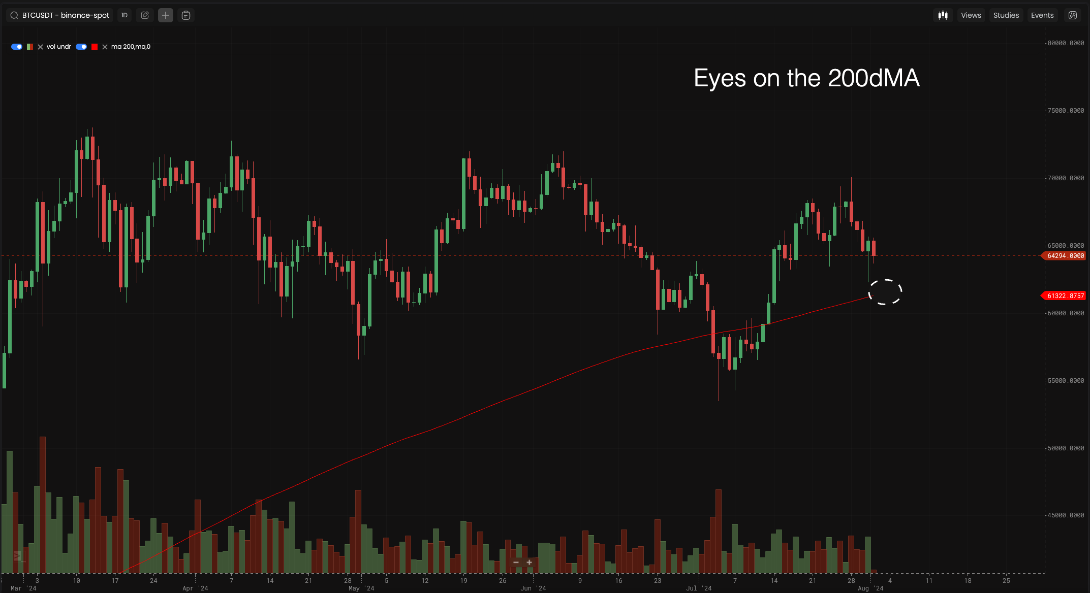 Meaning a retest of recent lows is likely on deck, and possible re-test of BTC's 200-day moving average is very possible over the weekend.