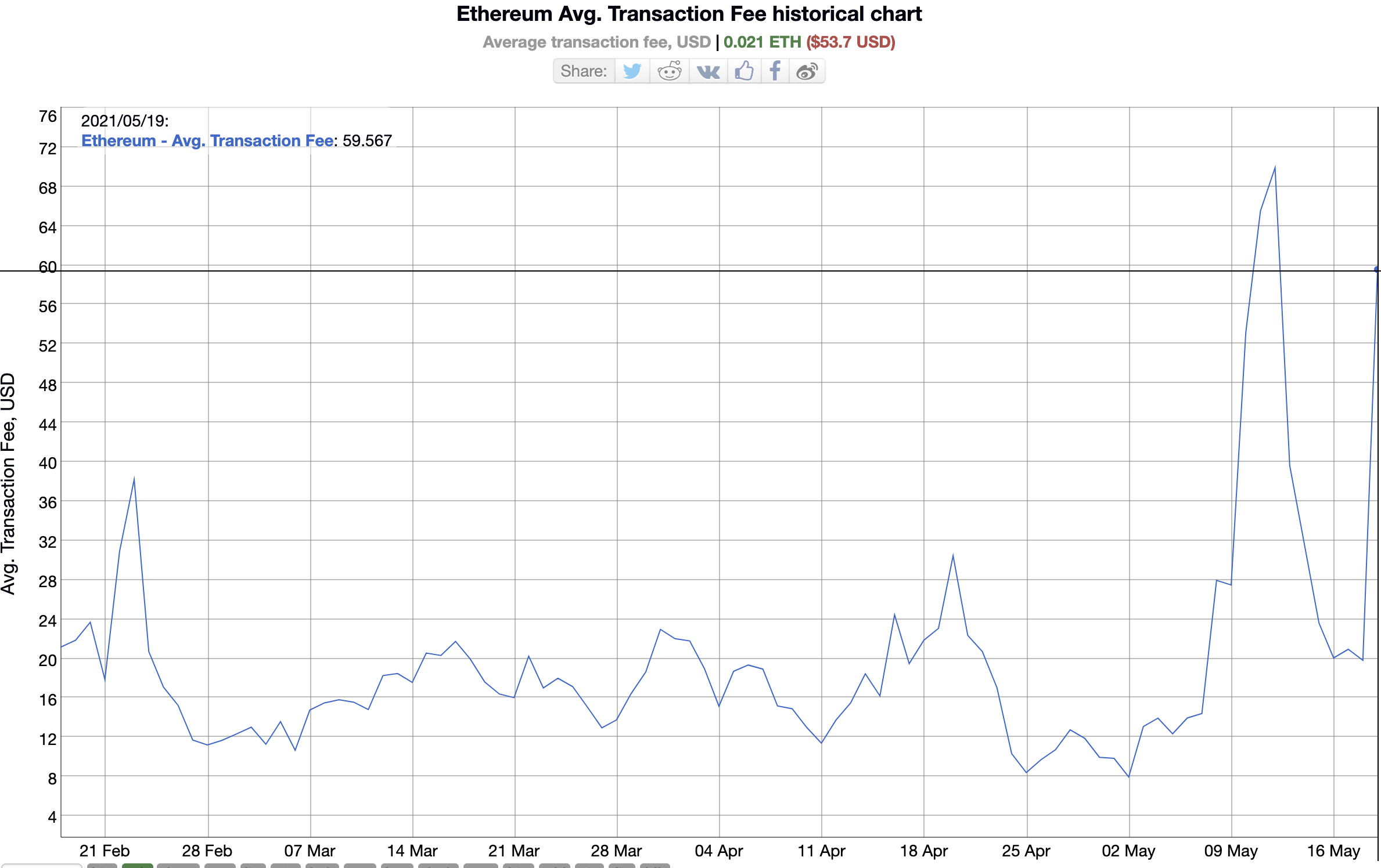Wanting to trade on a decentralized exchange like Uniswap… Enjoy the third highest day ever in average transaction fees at $60 per the chart below.