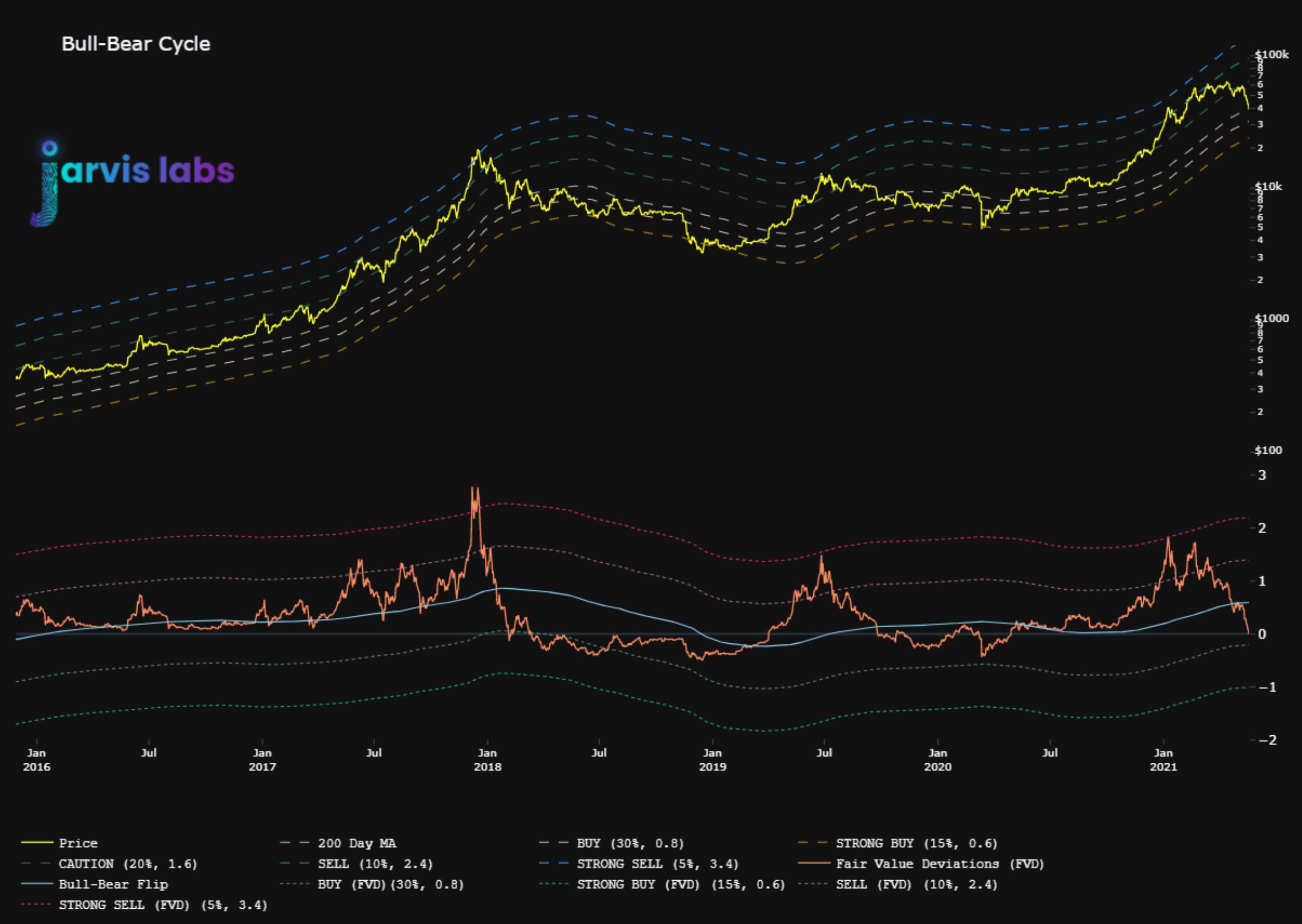 But what’s clear is when the fair price dips below the threshold we get bearish correction. And thanks to its steepness, it can still rebound with strength similar to the second half of 2017 in the chart.