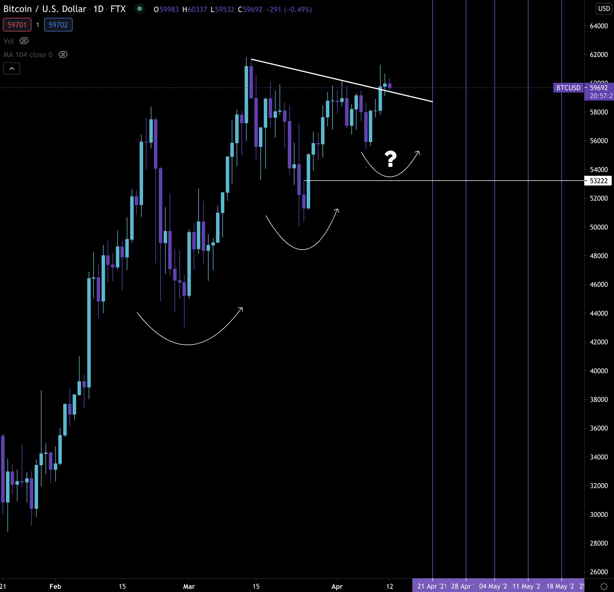 We remain steadfast on our view the the current market structure for bitcoin is pointing to higher highs in the coming week(s).