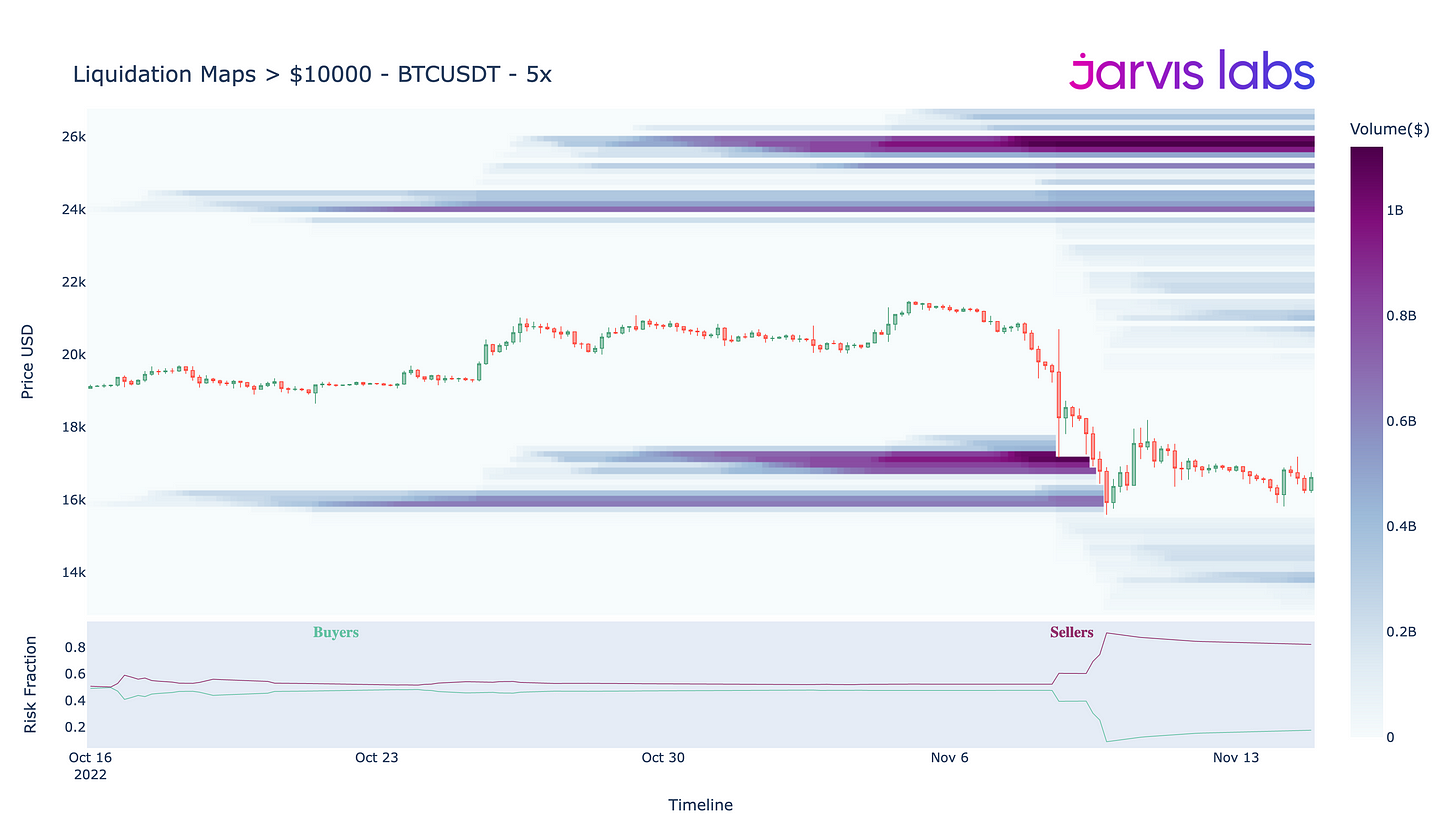 What we see now are long liquidity pools (~$500mm worth) forming below 15k, but much larger short liquidity pools, totaling in the billions (larger than the amount liquidated last week) resting near $21,000 and above.