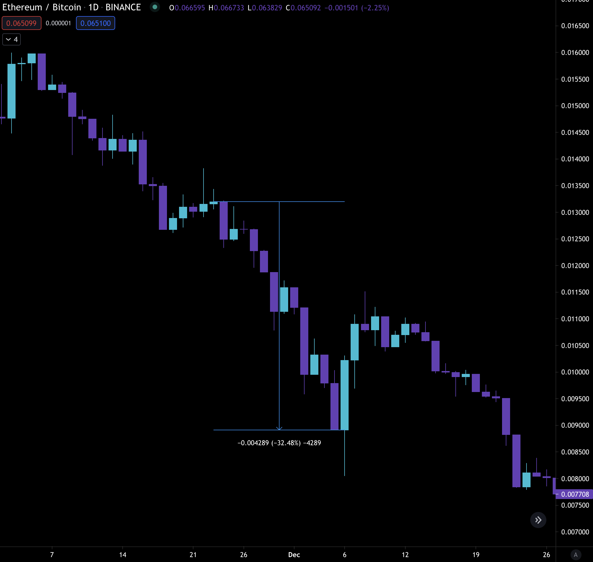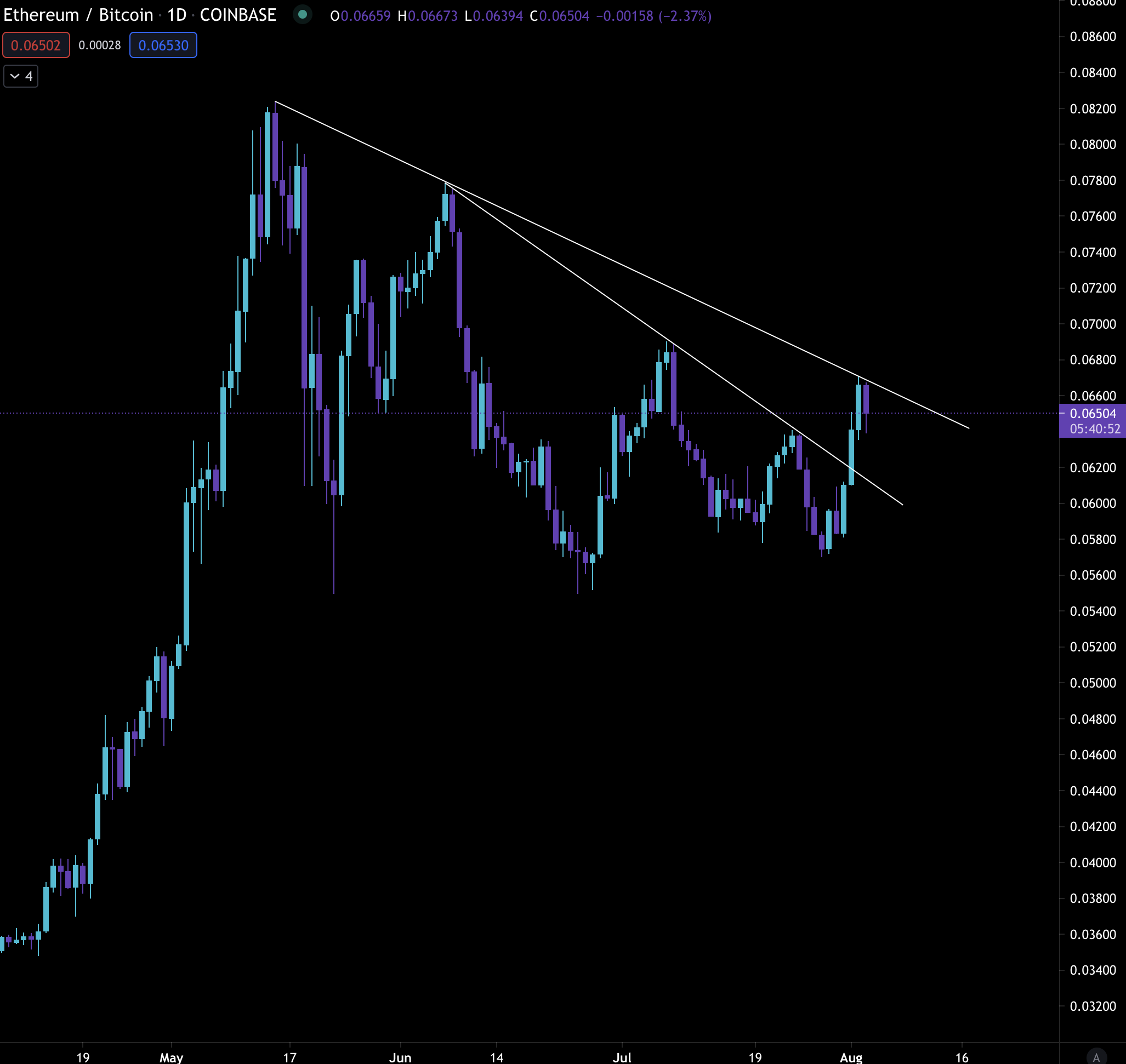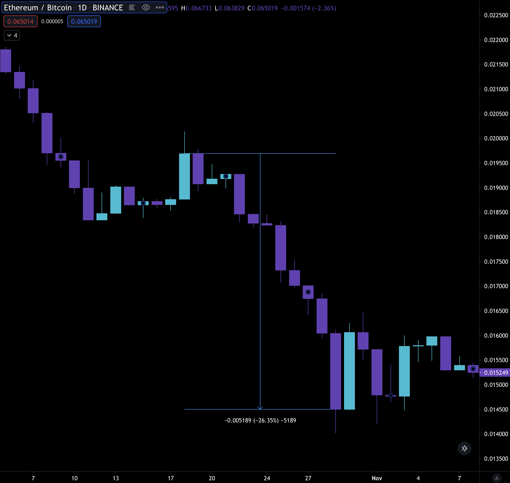 Here is the chart of Ethereum against bitcoin reflecting the strong price action in the weeks that followed.