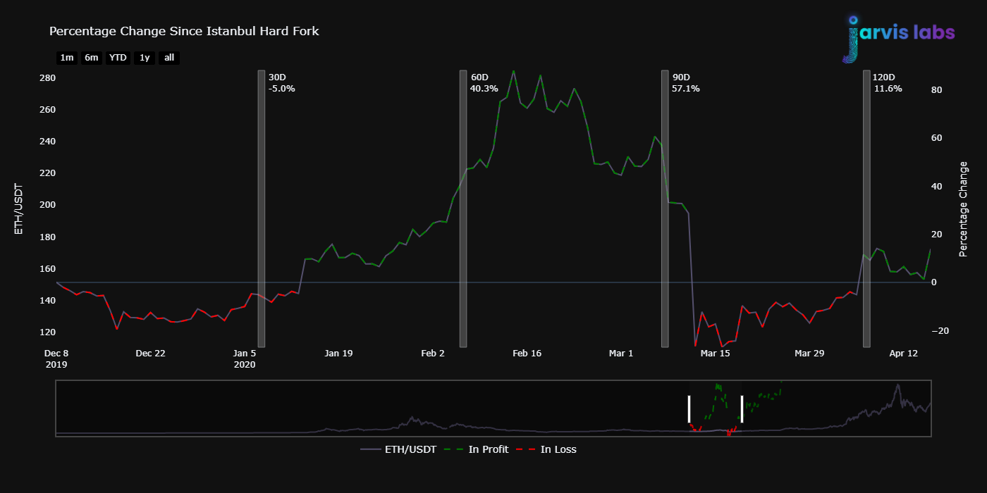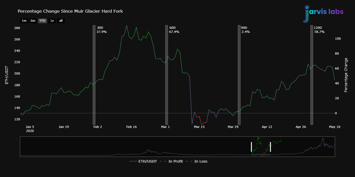 The fact Istanbul and Muir Glacier all happened in rapid succession might have been very positive for price. And it might be in part responsible for why the market as a whole grew in the ensuing 45 days.