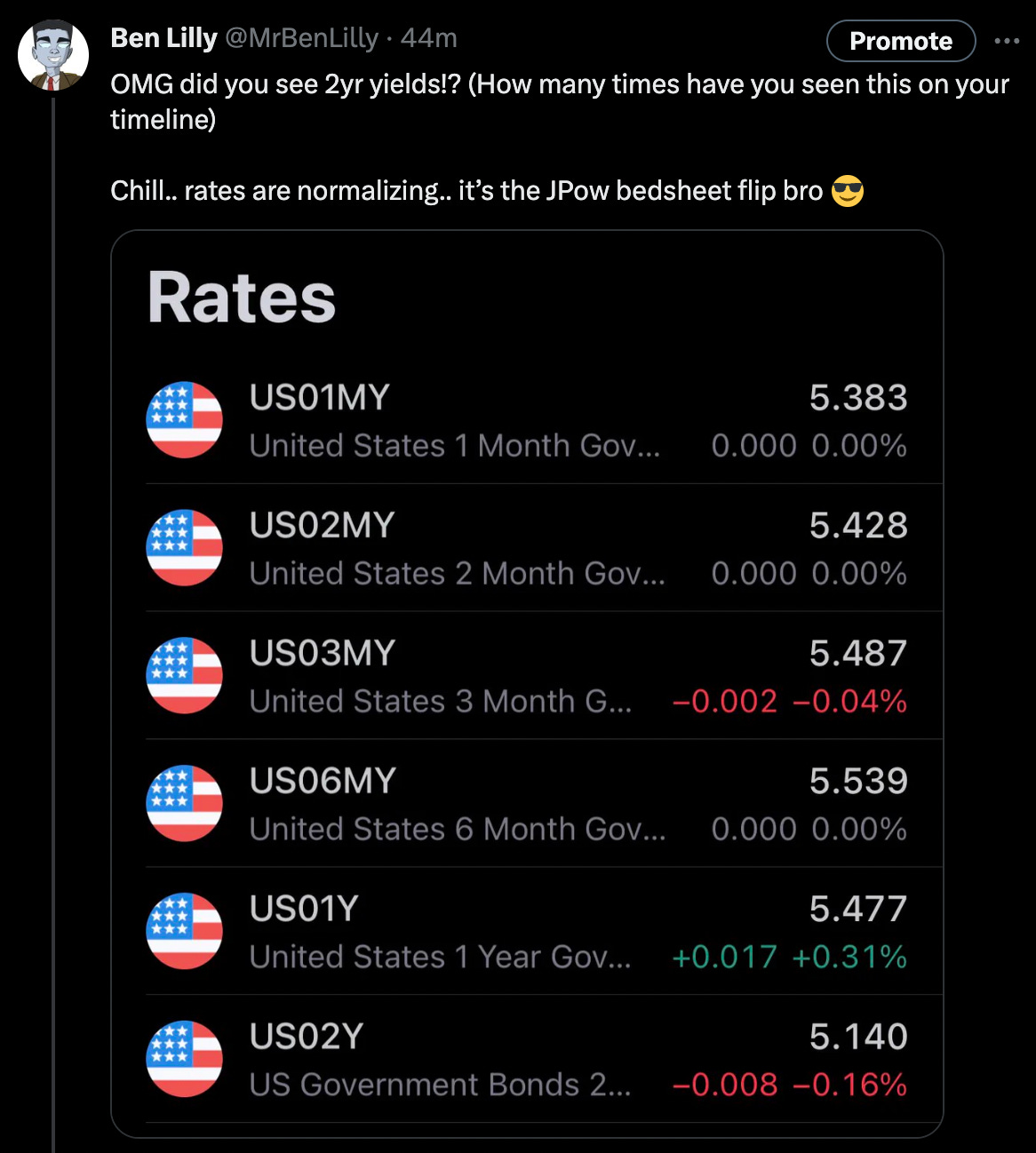 Like we're at the top end of the range, and then we're at the bottom end of the range. But it's just essentially been a really wide range for over half a year now since the fallout of the banking crisis in March.