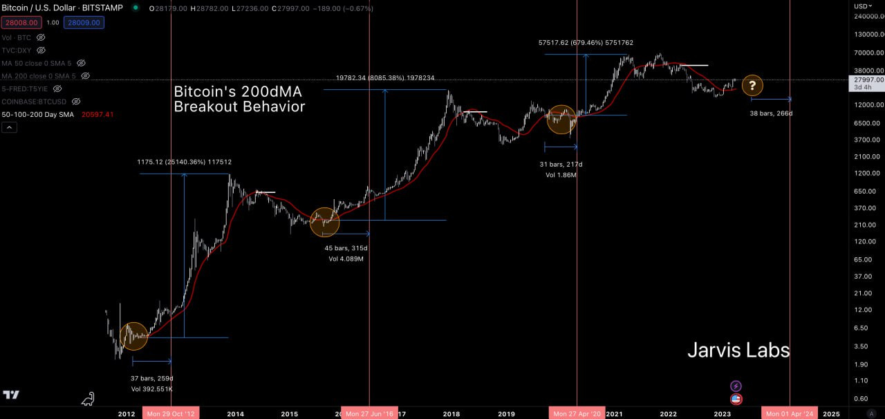 So when BTC climbs above this MA, it can be an incredibly bullish signal.