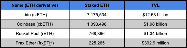 This gives us a starting point as it narrows the list of dozens of LSDs with enough size to a small list of stETH, cbETH, rETH, and frxETH.