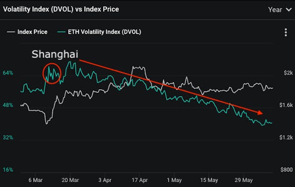 While it remains purely speculative, given that these trades do not occur on Paradigm, it's possible that this considerable overwriter could be a large validator node. This could potentially explain their influence over the ETH volatility supply/demand imbalance, which has had a significant effect on the compression of both ETH's implied and realized volatilities…
